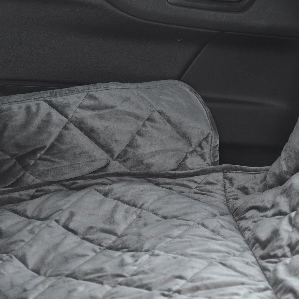 Coprisedile Posteriore Auto per Cani 160x145 cm in Tessuto Effetto Velluto Grigio