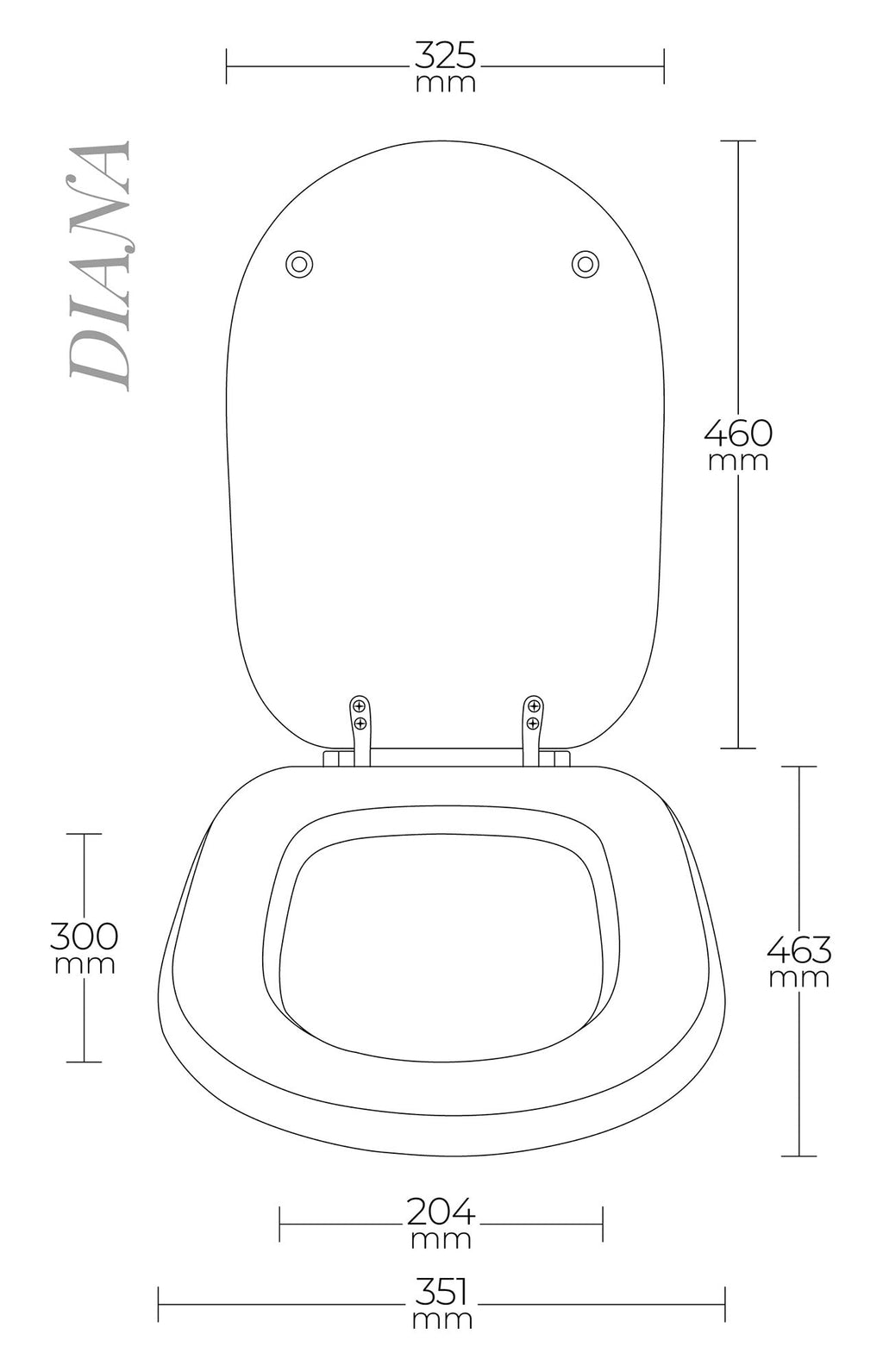 Copriwater Universale 35,1x46,3 cm in MDF Cerniere in Metallo Cromato Diana Bianco Lucido