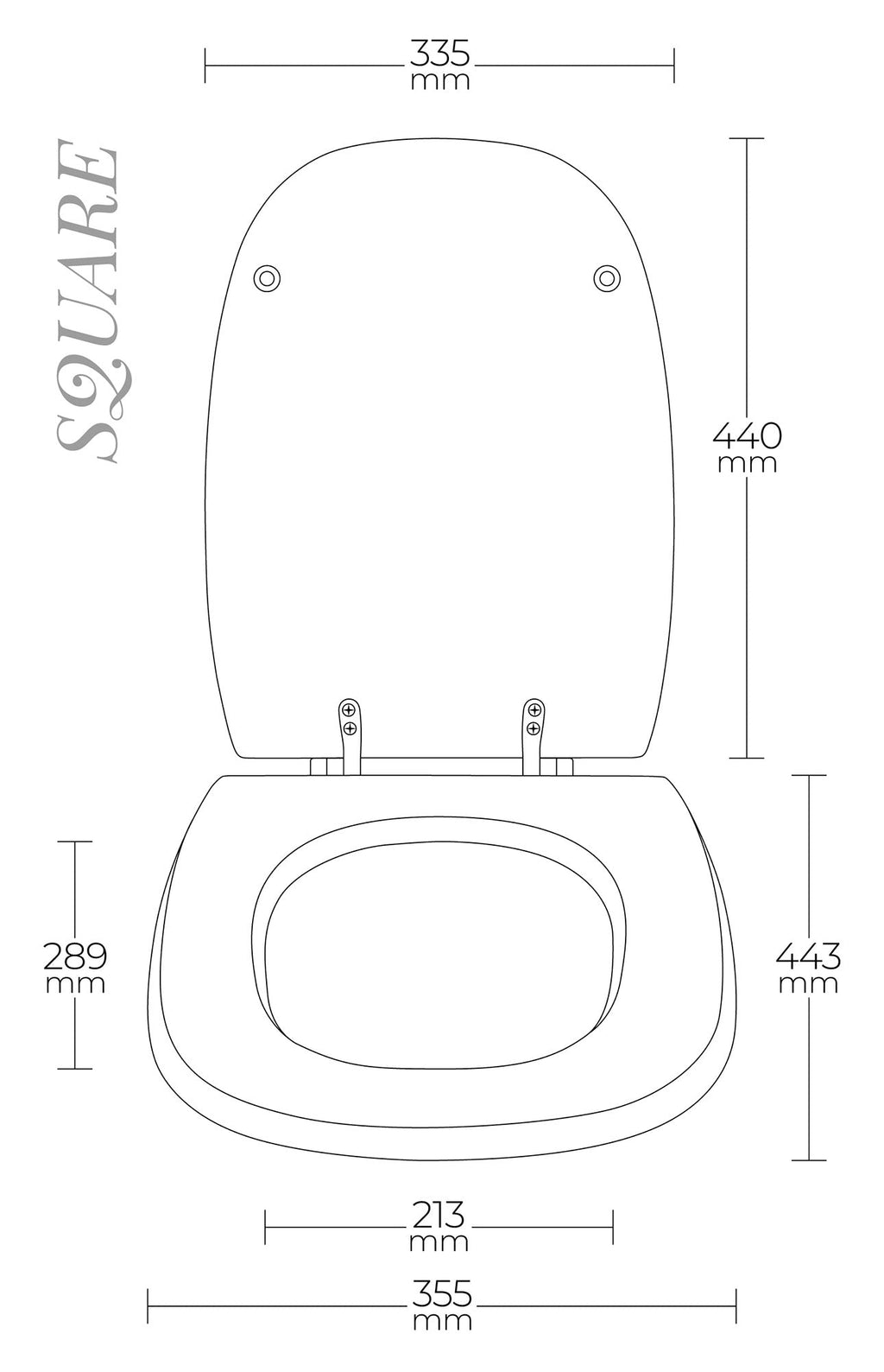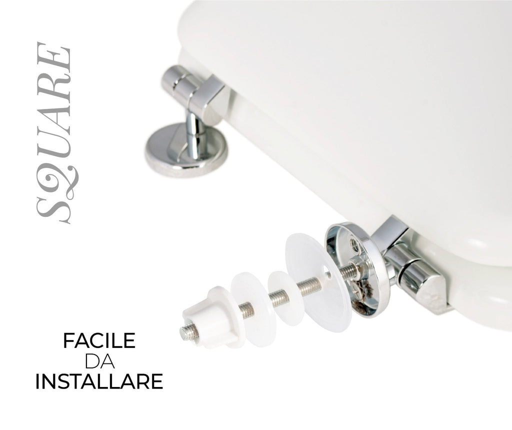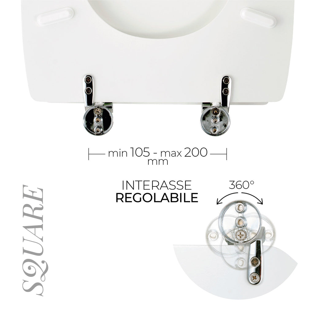Copriwater Universale 35,5x44,3 cm in MDF Cerniere in Metallo Cromato Square Bianco Lucido