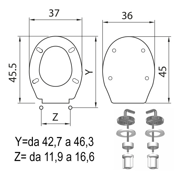 Cerniere per Copriwater in acciaio inox regolabili dal basso, adatto per vasi con forma universale.