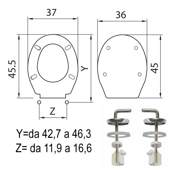 Cerniere per Copriwater in acciaio inox regolabili dal basso, adatto per vasi con forma universale.