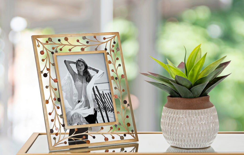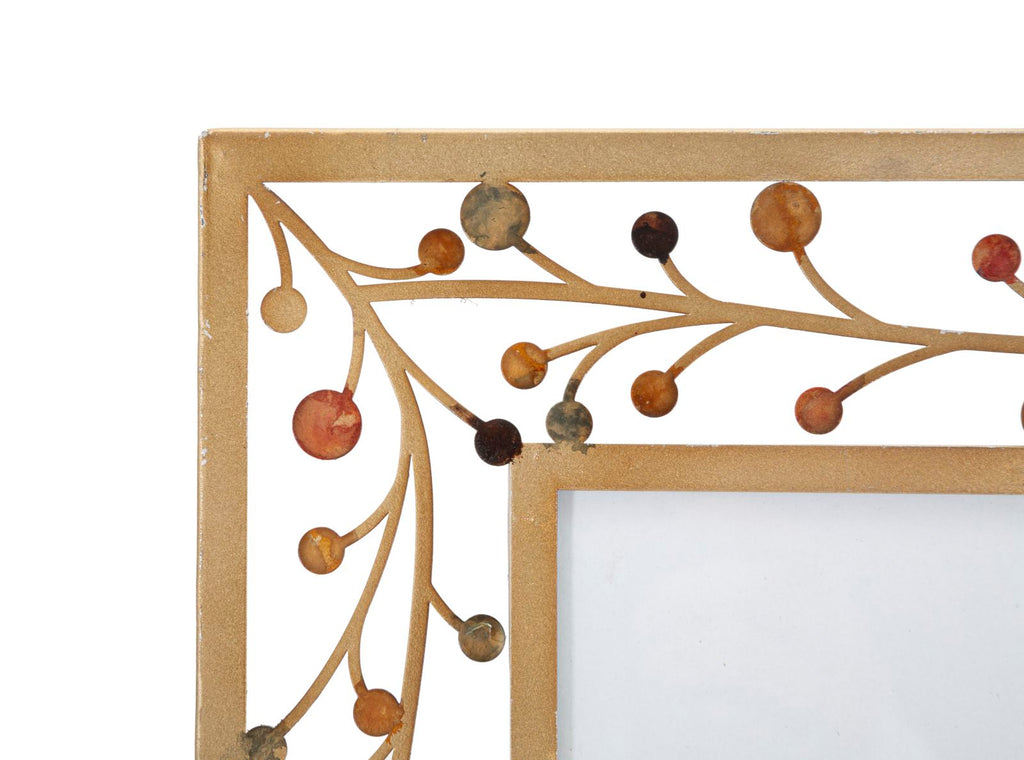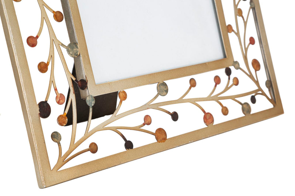 Il portafoto in metallo è un'elegante e raffinata soluzione per conservare i tuoi ricordi più preziosi. La cornice è splendidamente decorata con deliziosi ramoscelli, impreziositi da vivaci decorazioni colorate, che aggiungono un tocco di gioia e allegria. Con il formato ideale di 15x20 cm, potrai esporre le tue foto preferite con stile e classe in qualsiasi ambiente della tua casa. Un oggetto decorativo dal design sofisticato che si presta a diventare un'ottima idea regalo per i tuoi cari.