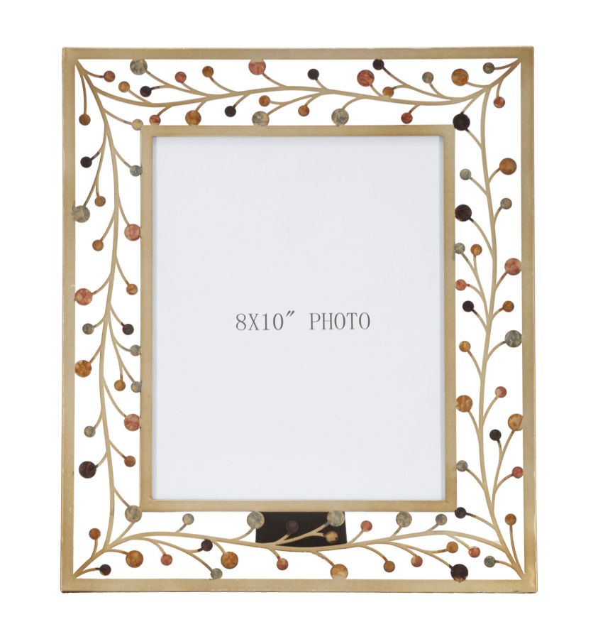 - Cornice in metallo con decorazione di ramoscelli, colori vivaci, adatta per foto 20x25 cm