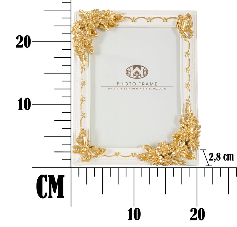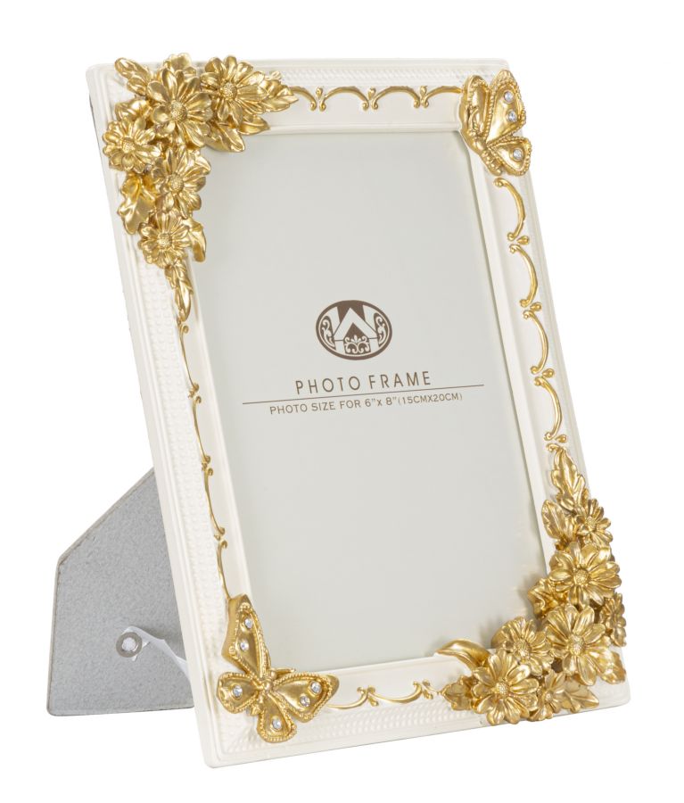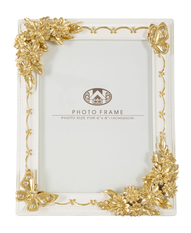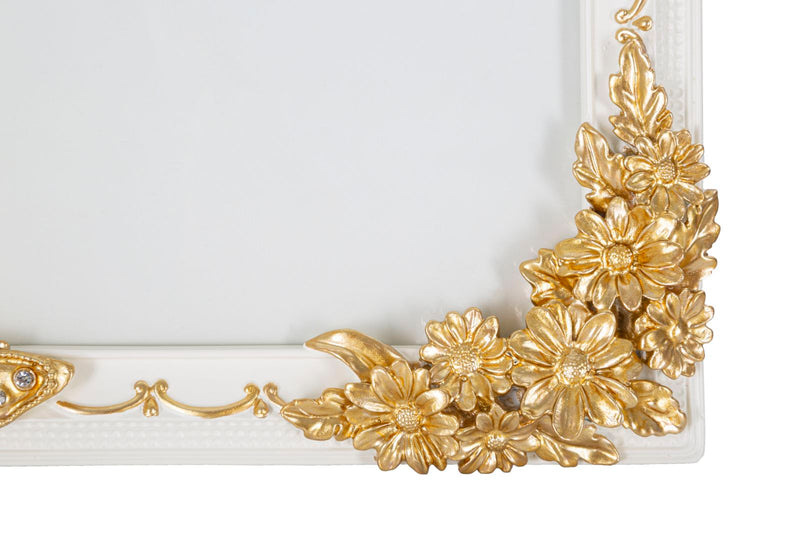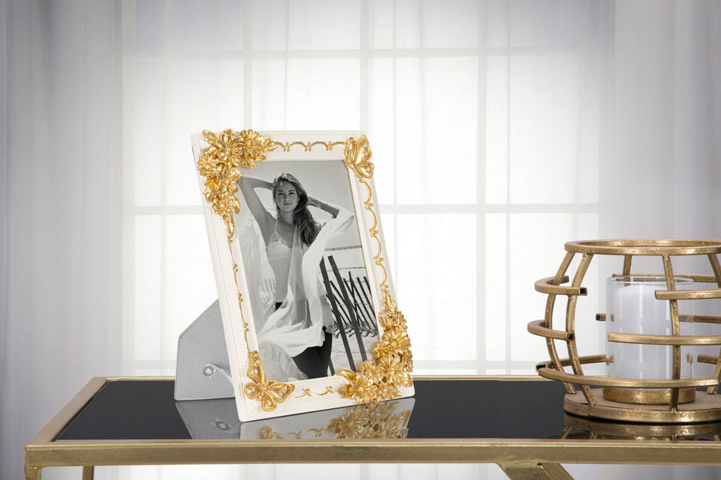 Cornice in resina con vetro. Linee eleganti e geometriche combinate con delicate composizioni floreali dorate per incorniciare i tuoi ricordi più belli in modo contemporaneo e mai scontato.