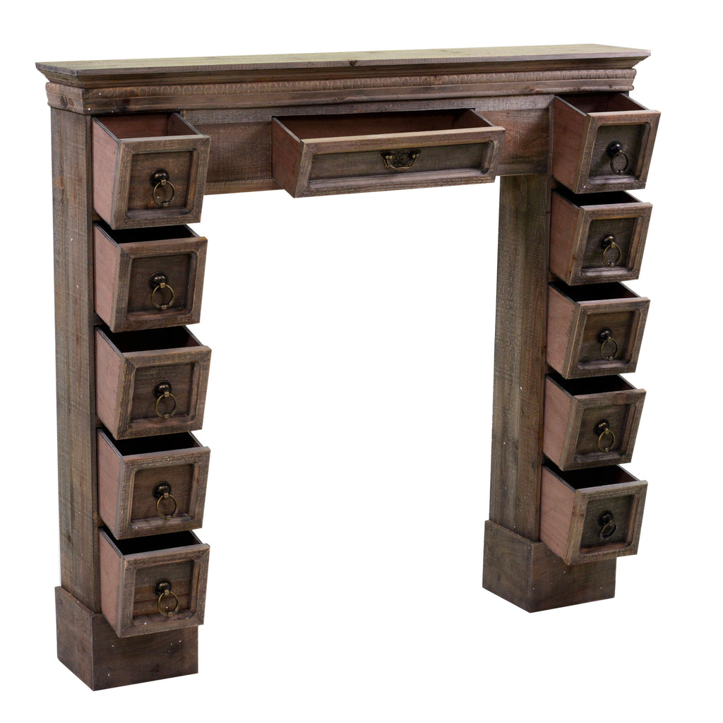 Cornice Camino in Legno 11 Cassetti 108x18x101cm Frame Marrone