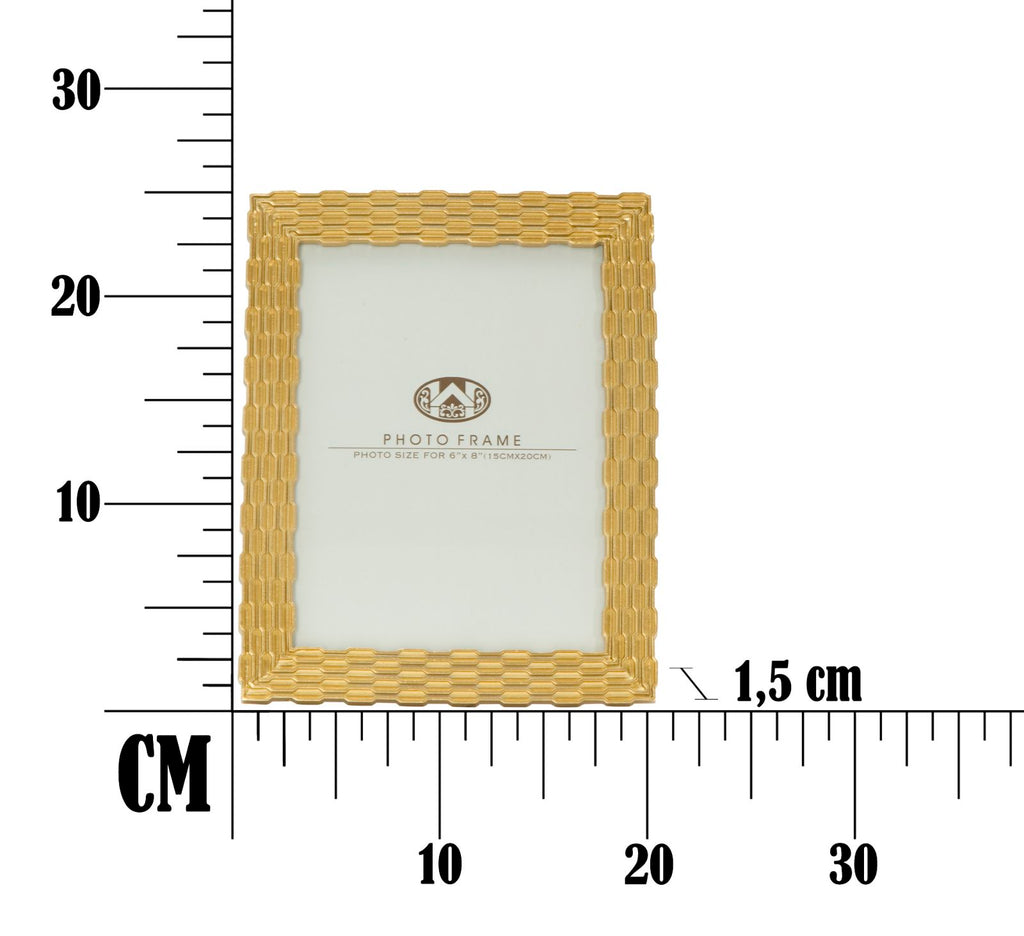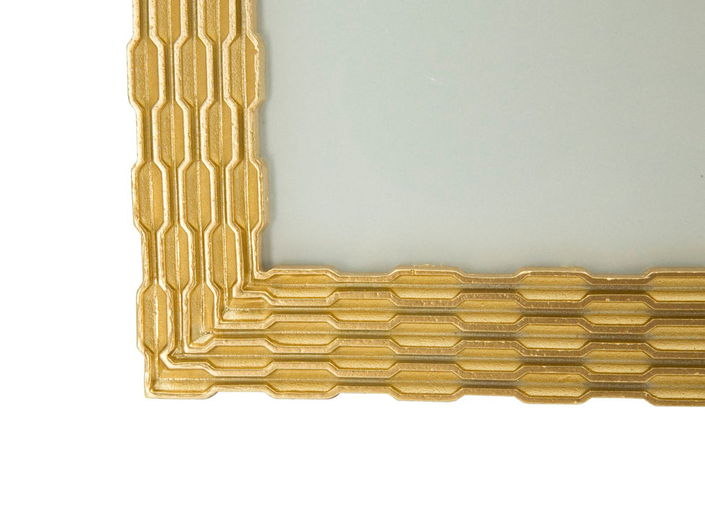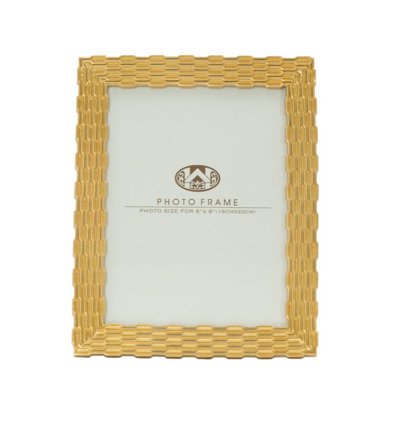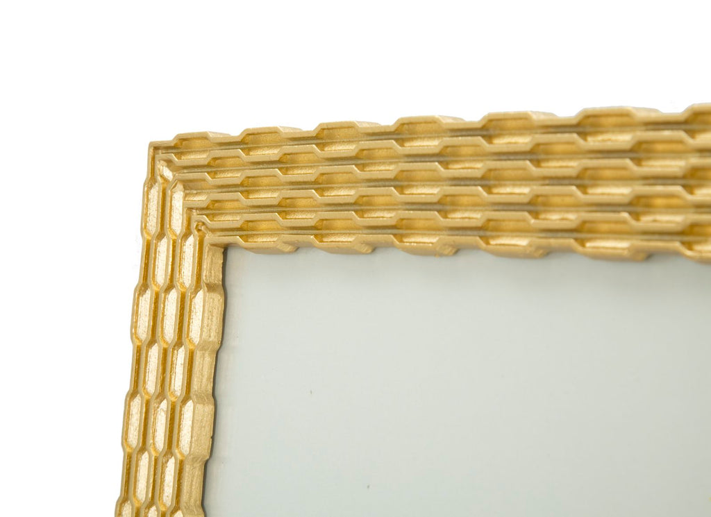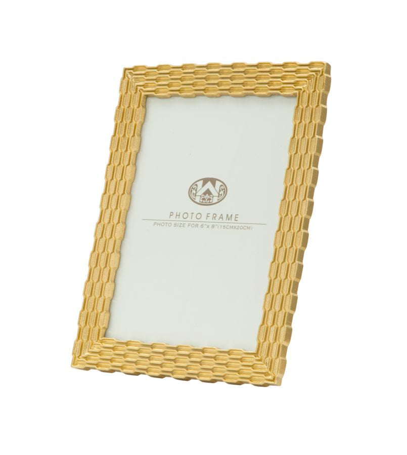 Elegante cornice in resina con decori geometrici. Un tocco d'oro non può mancare in una casa glam. Le cornici portafoto sono una soluzione ideale per dare uno tocco di luce all'ambiente senza sovraccaricarlo.