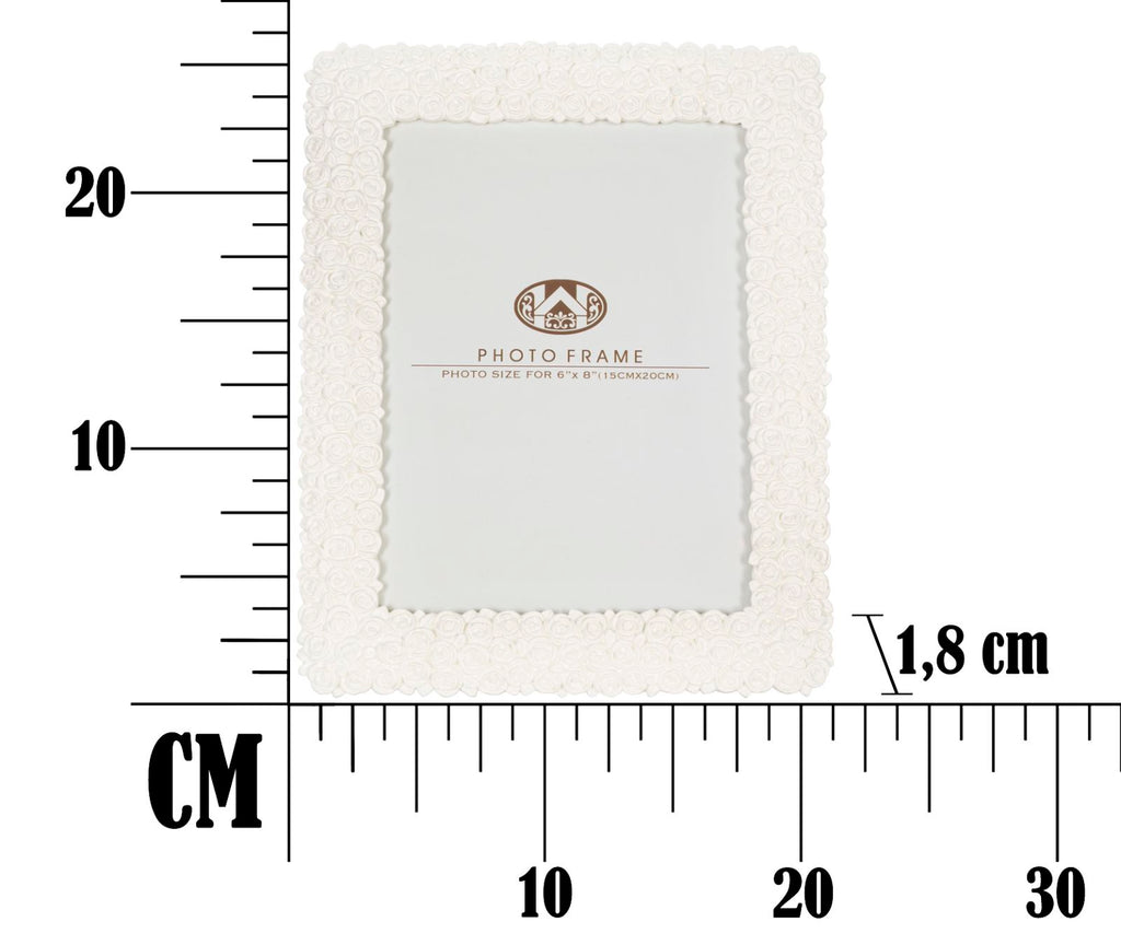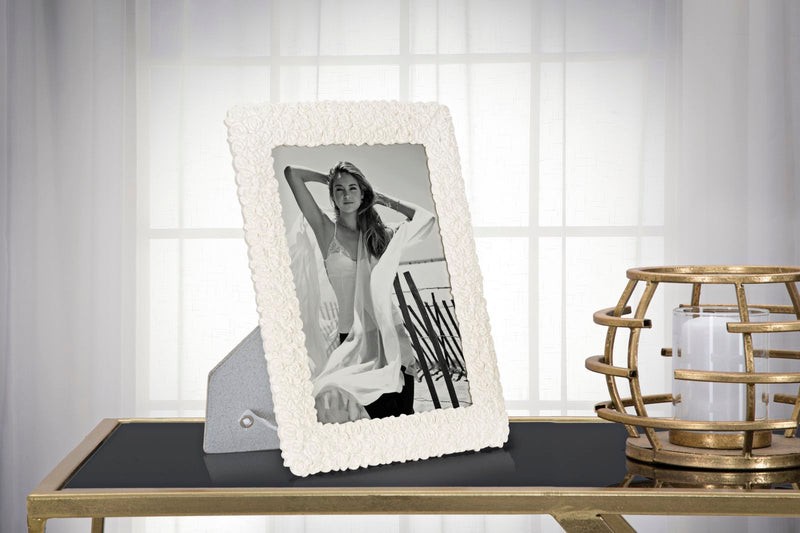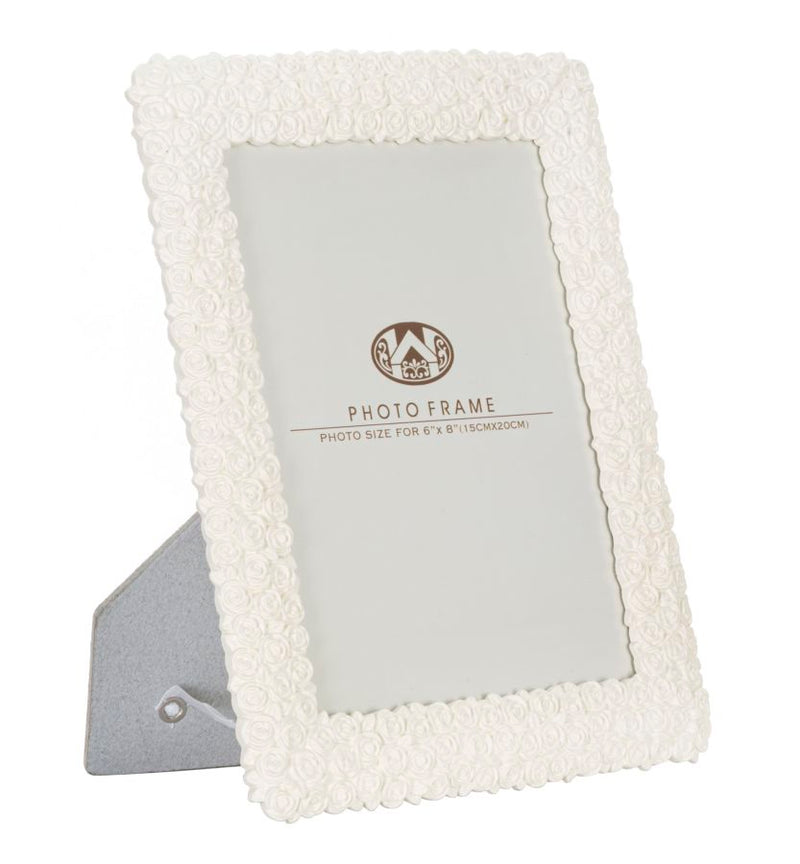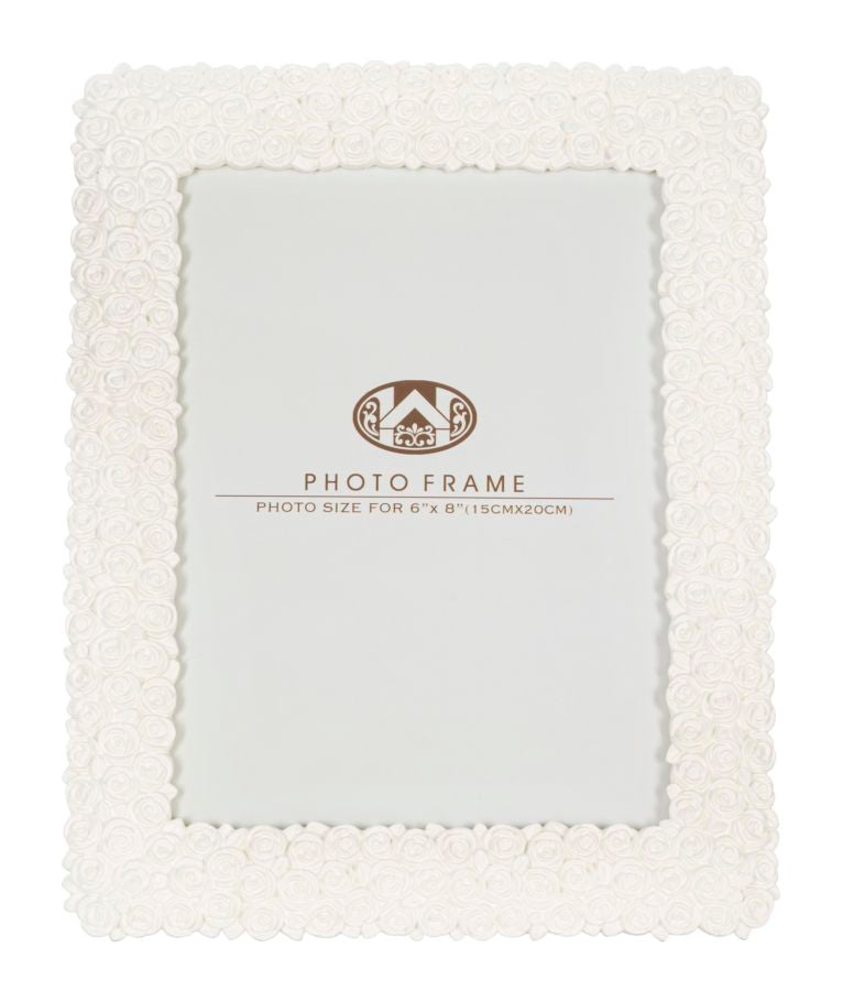 Cornice in resina con vetro. Linee eleganti impreziosite da delicate roselline per incorniciare i tuoi ricordi più belli in modo contemporaneo e mai scontato.