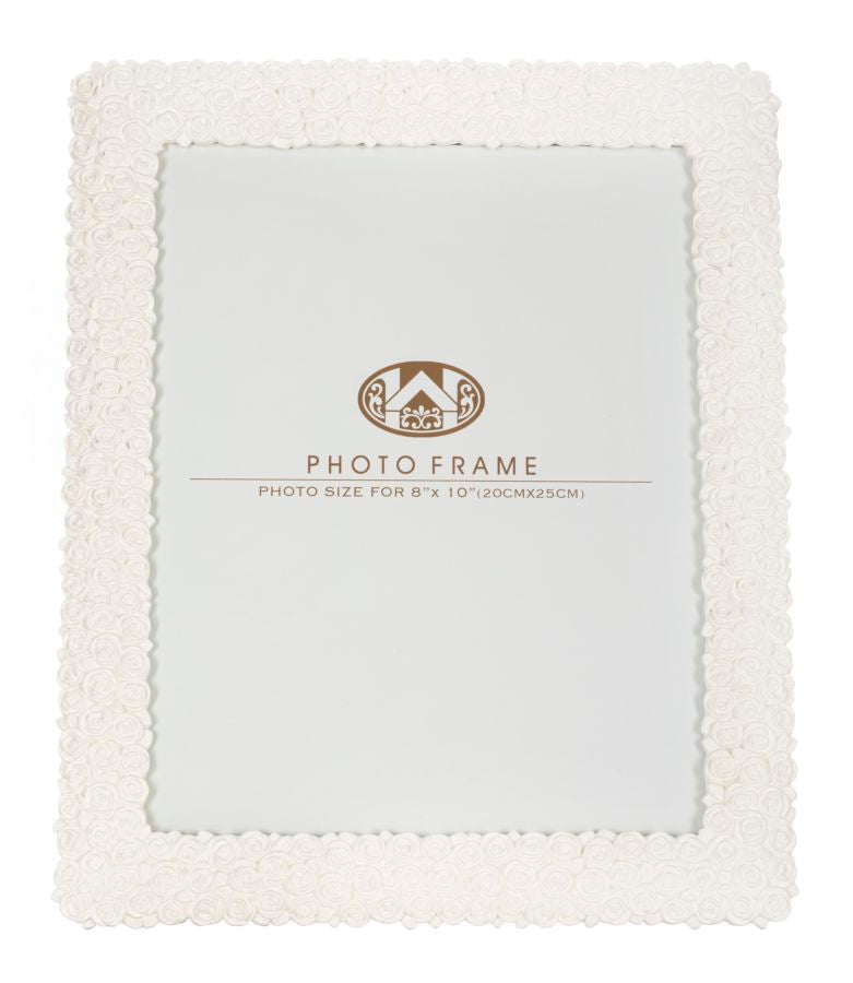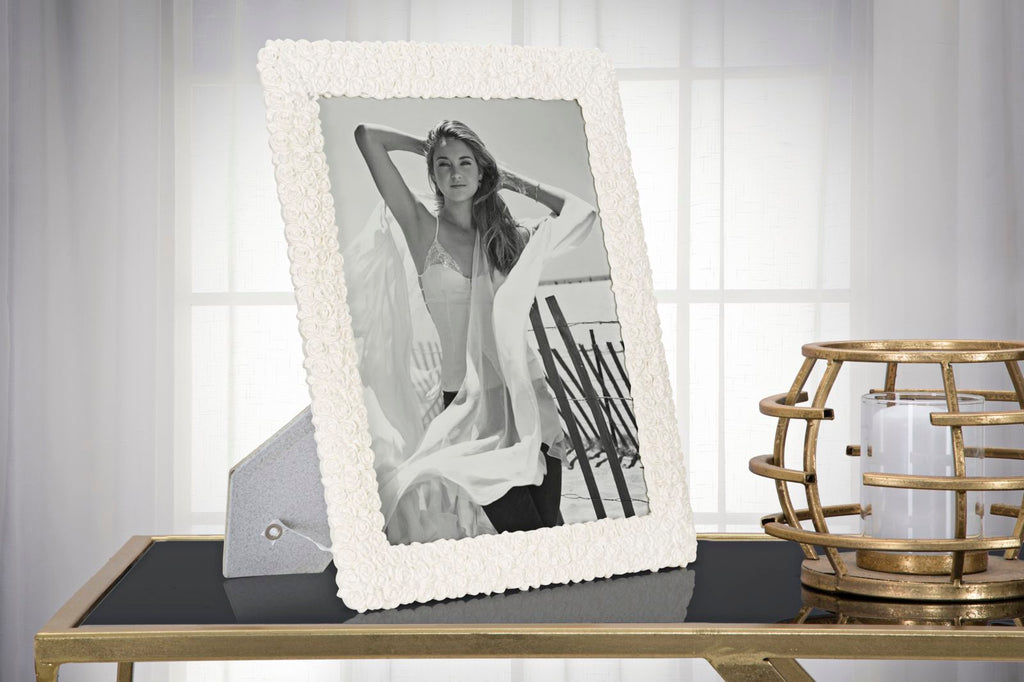 Cornice in resina con vetro. Linee eleganti impreziosite da delicate roselline per incorniciare i tuoi ricordi più belli in modo contemporaneo e mai scontato.