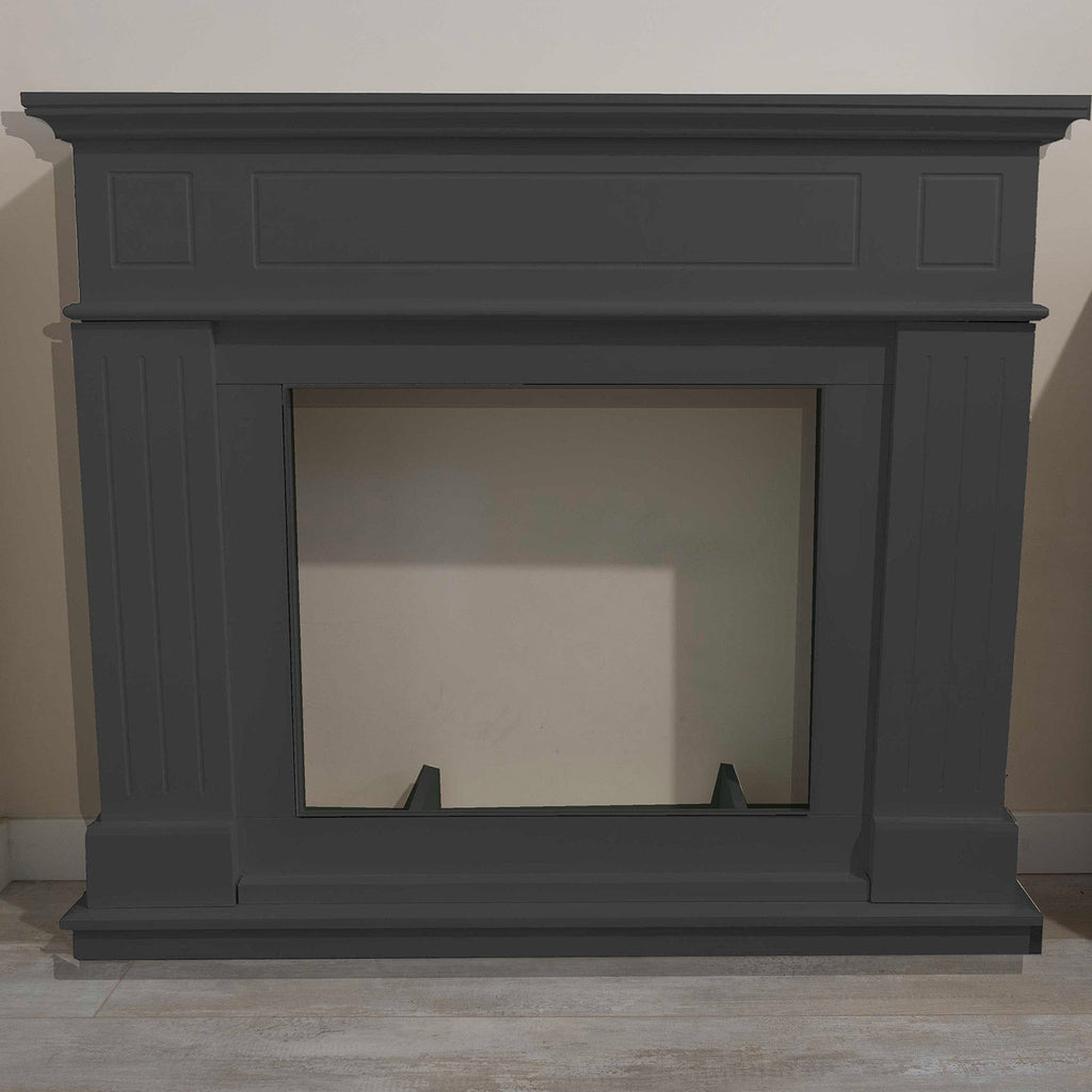 Cornice per Caminetto da pavimento modello Pienza, colore grigio scuro. Cornice in stile classico modello Pienza per caminetto elettrico, ottimo per casa e ufficio.