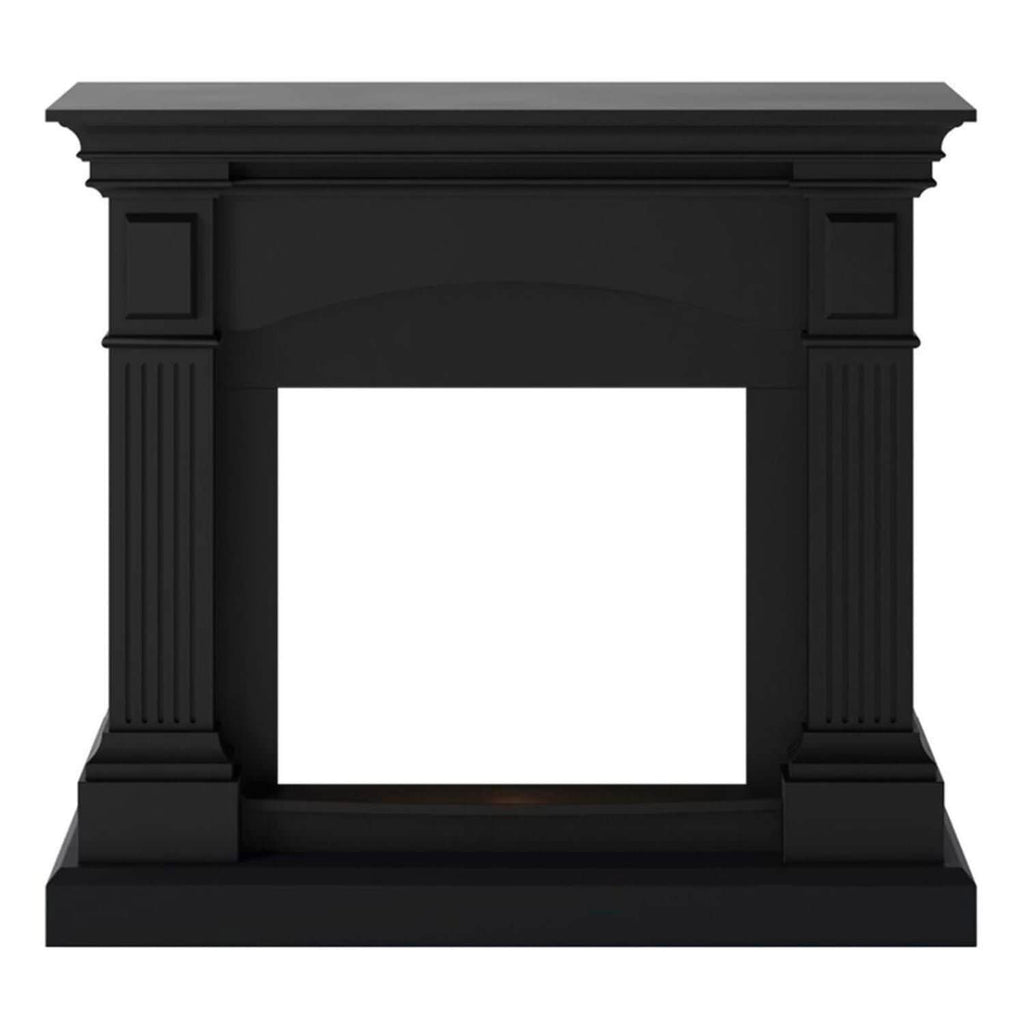 Cornice per Caminetto da pavimento modello CETONA colore nero profondo Cornice in stile classico per caminetto elettrico.