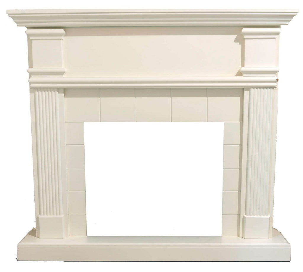 Cornice per Caminetto da pavimento modello Caldera, colore bianco crema. Cornice in stile classico modello Caldera per caminetto elettrico.