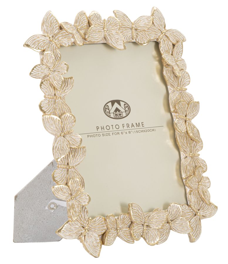 Questo elegante portafoto con cornice ti offre un tocco di raffinatezza grazie al suo design unico. La cornice è realizzata con un insieme di bellissime farfalle, che aggiungono delicatezza e fascino al tuo ambiente domestico. Il formato foto di 15x20 cm ti permette di inserire i tuoi ricordi più preziosi e di esporli con stile. Lasciati conquistare da questo portafoto originale e aggiungi un tocco di grazia all'arredamento della tua casa.