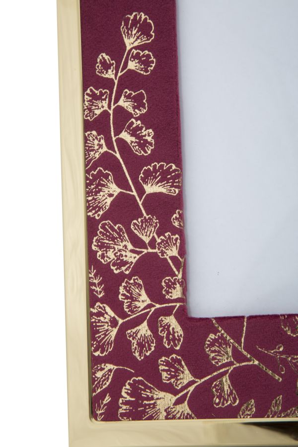 Cornice Glam 24x1,5x29 cm in Ferro MDF e Vetro Bordeaux e Oro