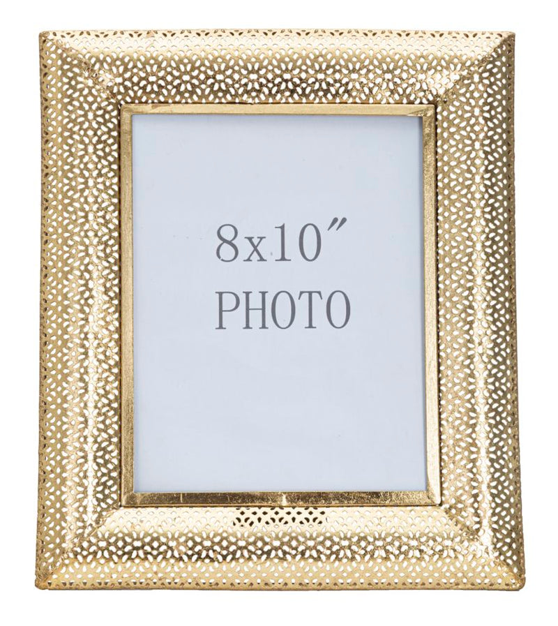Elegante cornice portafoto in metallo dorato impreziosità da eleganti intagli. Un tocco glam che dona luminosità ad ogni stanza.