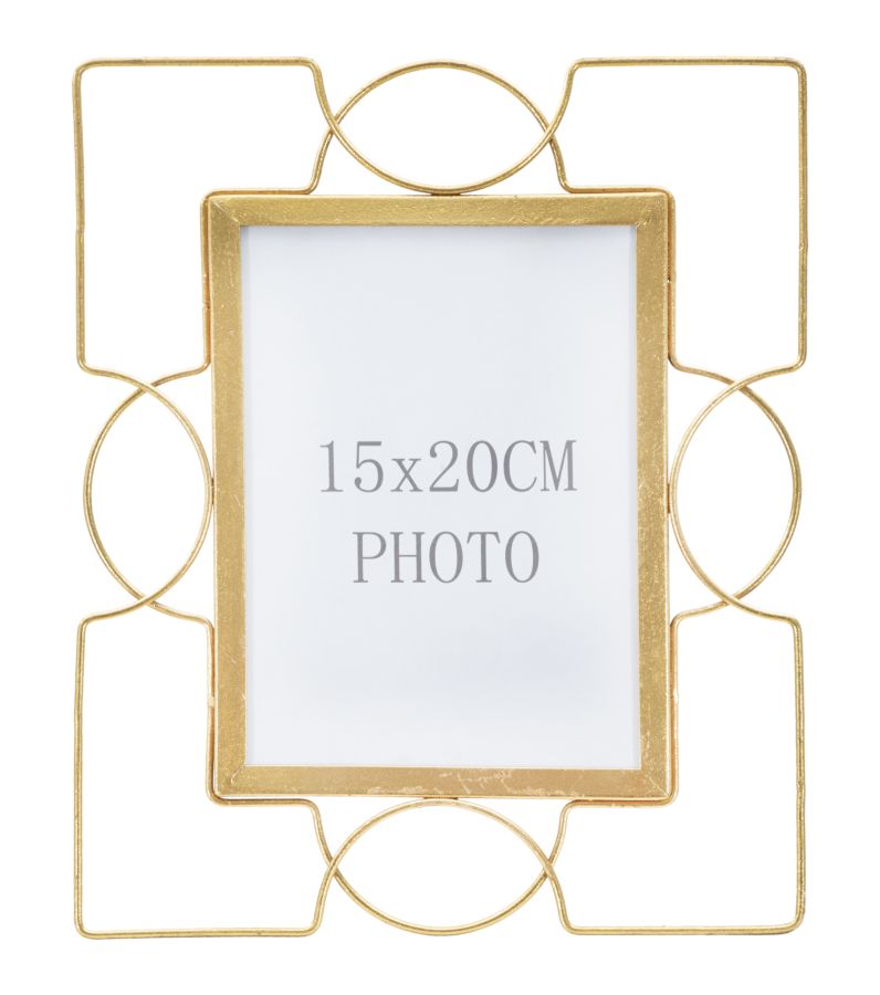 - La cornice è in metallo dorato e ha un design semplice con linee geometriche