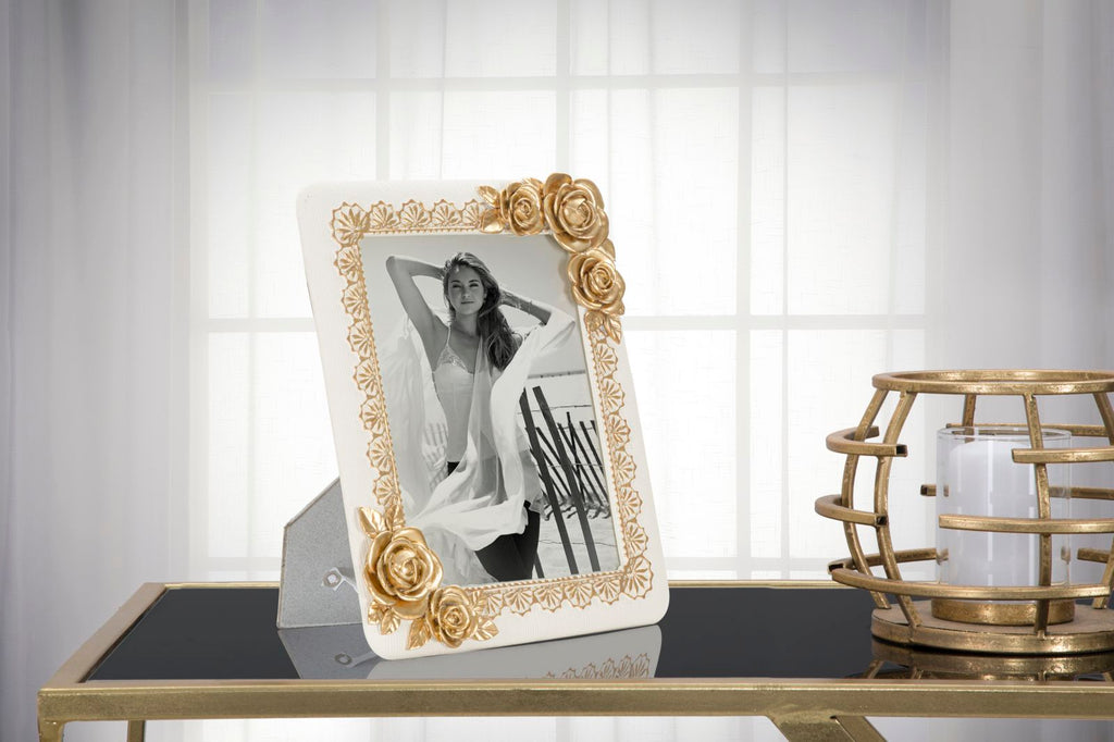 Cornice in resina con vetro. Linee eleganti e geometriche combinate con delicate composizioni floreali dorate per incorniciare i tuoi ricordi più belli in modo contemporaneo e mai scontato.
