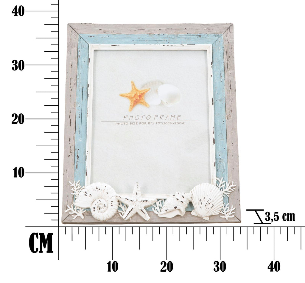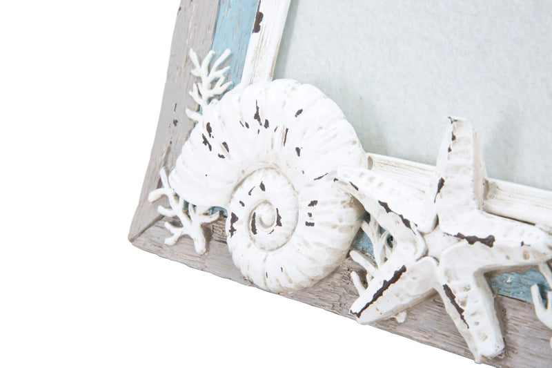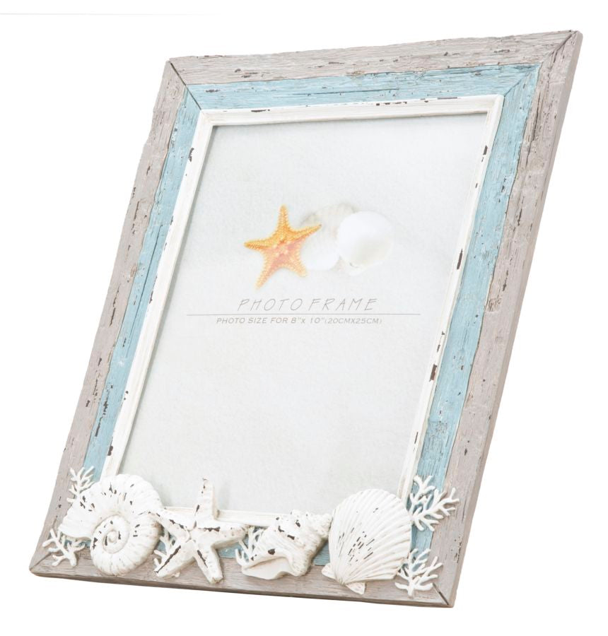 Cornice in resina con lavorazione simil legno e conchiglie. Tenere cornici per incorniciare i tuoi ricordi più belli