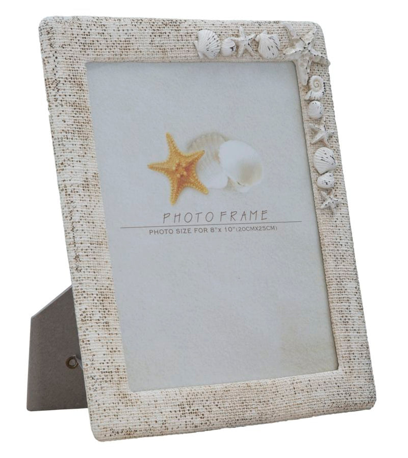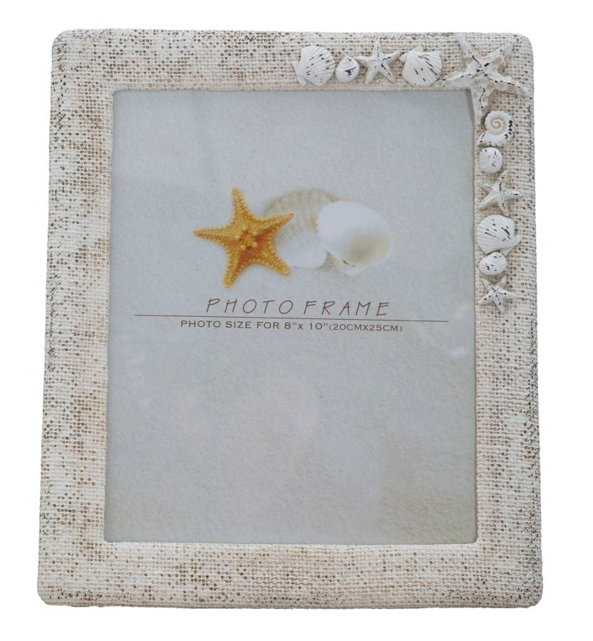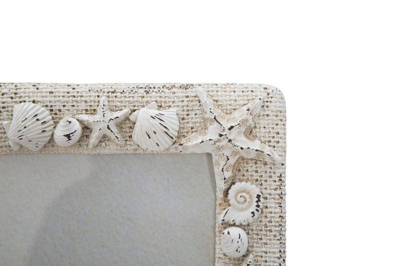 Cornice in resina con lavorazione simil tessuto e conchiglie. Tenere cornici per incorniciare i tuoi ricordi più belli