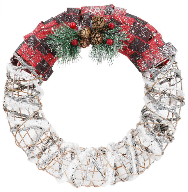Corona di Natale Dietroporta Ø30 cm con Nastro e Pic Natalizia