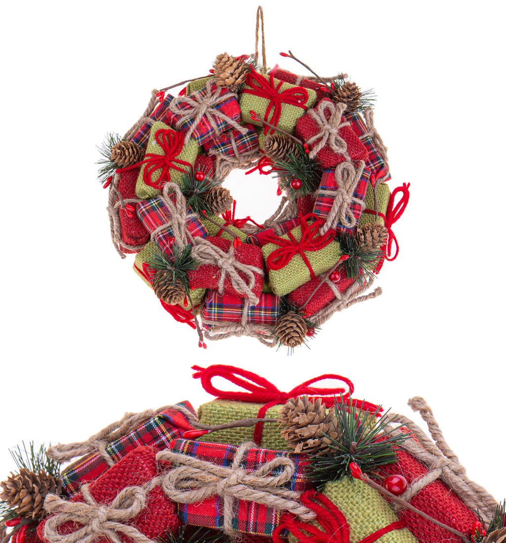 Corona Natale con Pacchi Dono Ø32 cm Scozzese