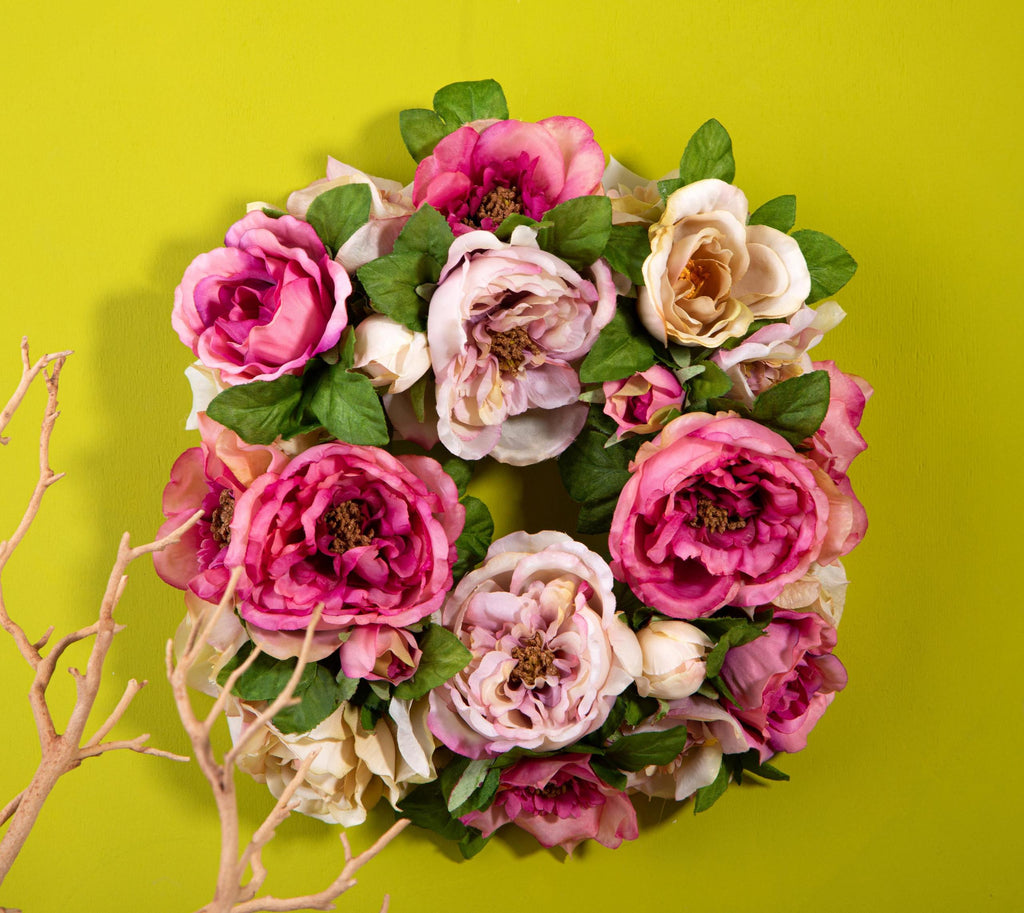 Set 2 Coroncina Artificiale con Rose Larghezza 30,5 cm