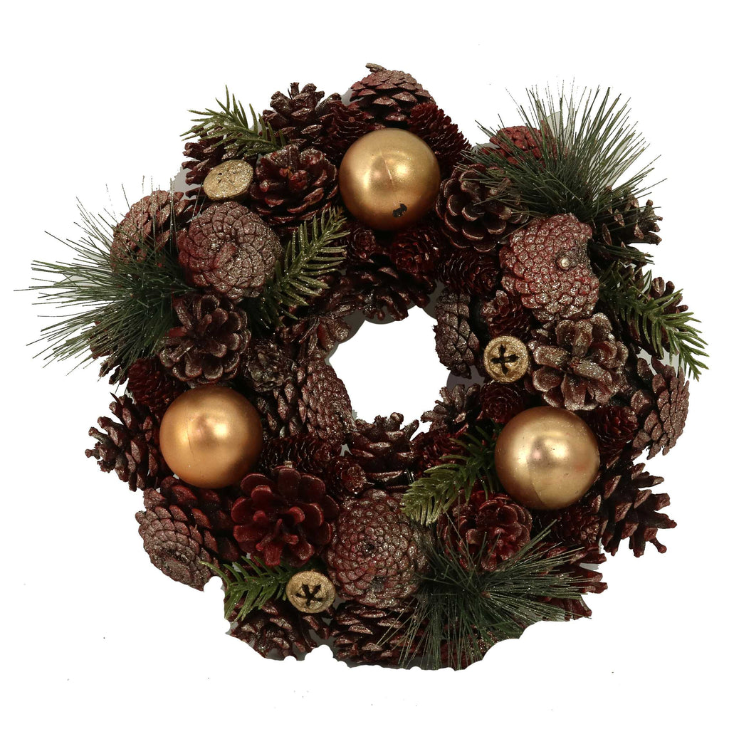Coroncina con palline oro e pigne amaranto cm Ø30xh8,5