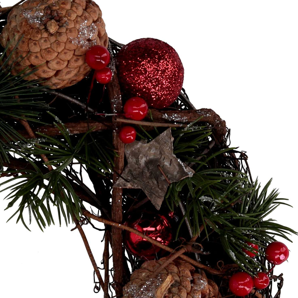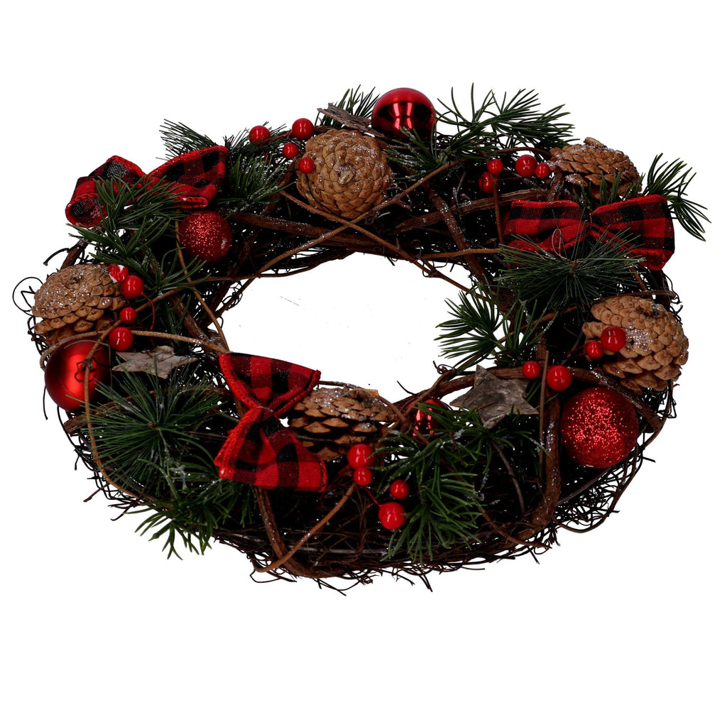 Coroncina con pigne e fiocchi rosso scozzese cm Ø34x10