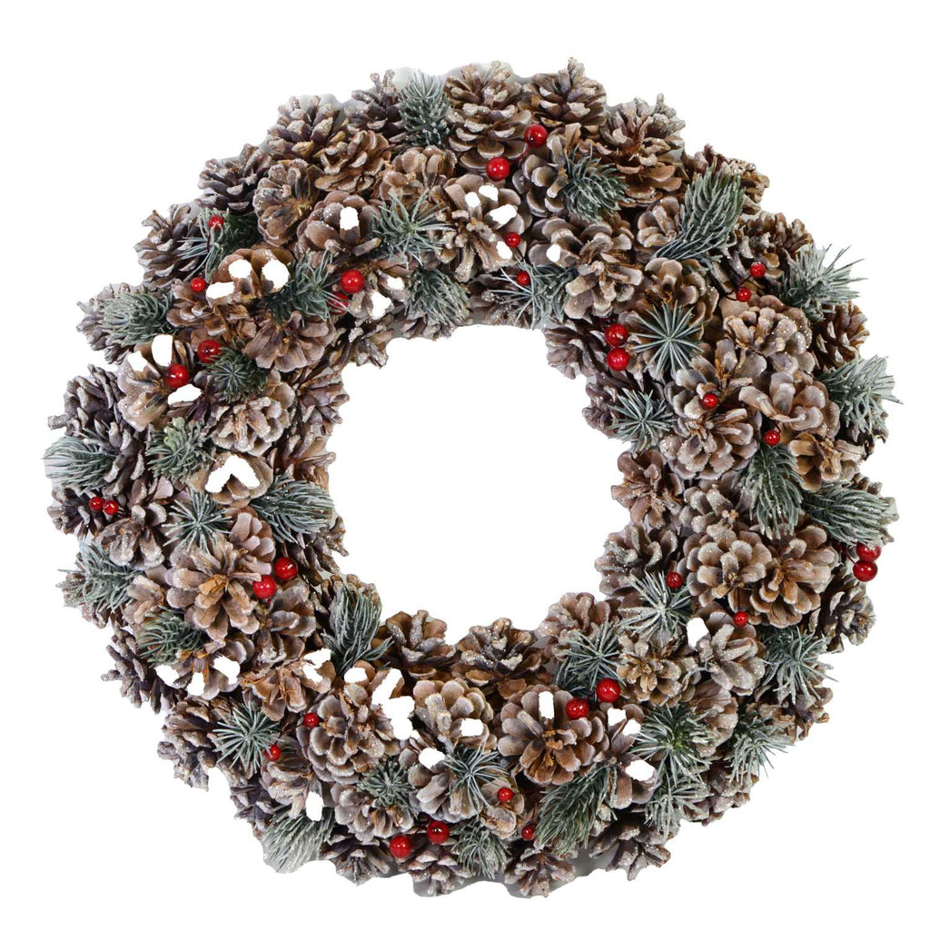 Coroncina glitter con bacche e pigne naturale cm Ø30