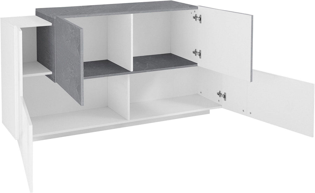 Credenza 2+2 Ante Battenti 160x86x45 cm New Coro Bianco Lucido e Ardesia