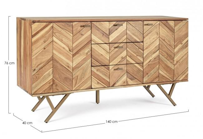 Credenza 2 Ante 3 Cassetti 140x40x76 cm in Legno Marrone