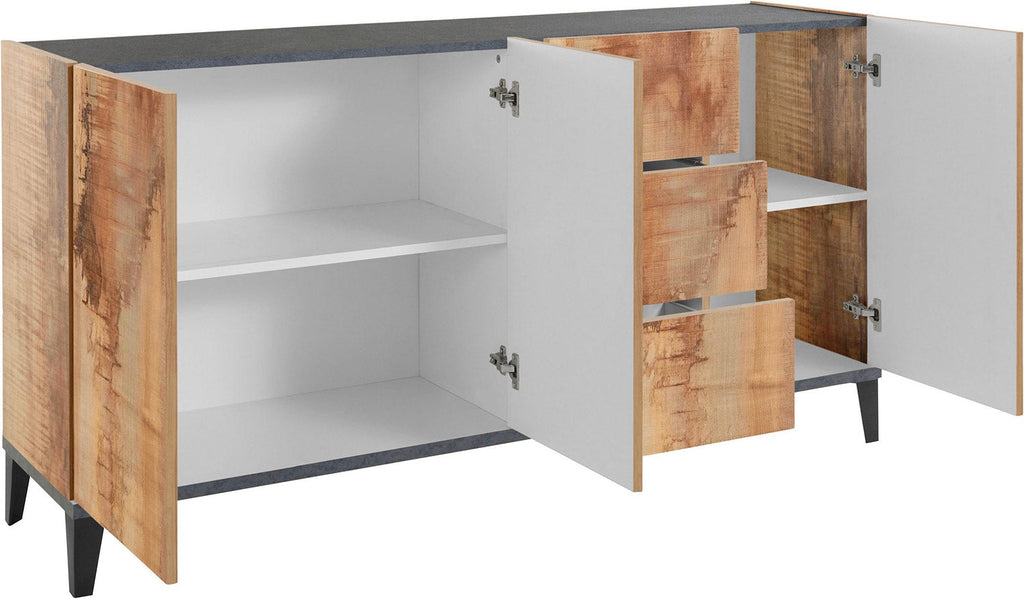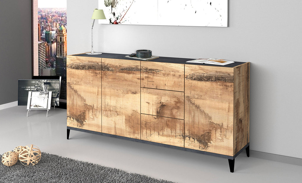 Credenza 3 Ante + 3 Cassetti 160x40x82 cm Sunrise Acero Pereira e Ardesia