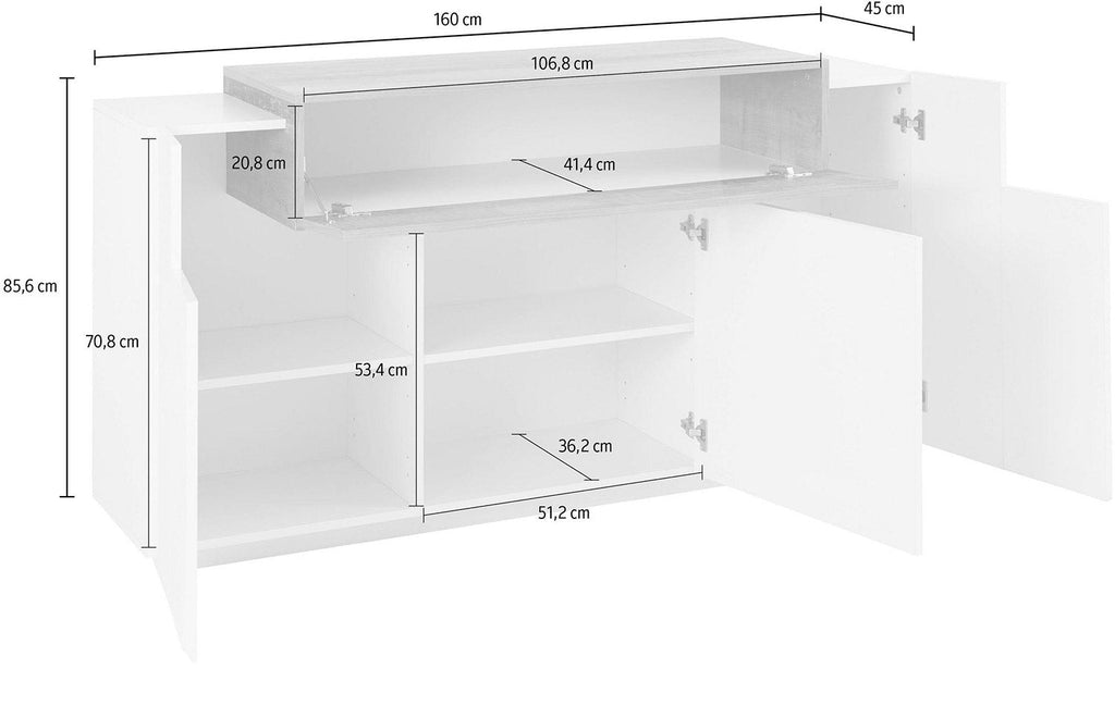 - Dimensioni del mobile montato: 160 x 45 x 85,5 (LxPxA)