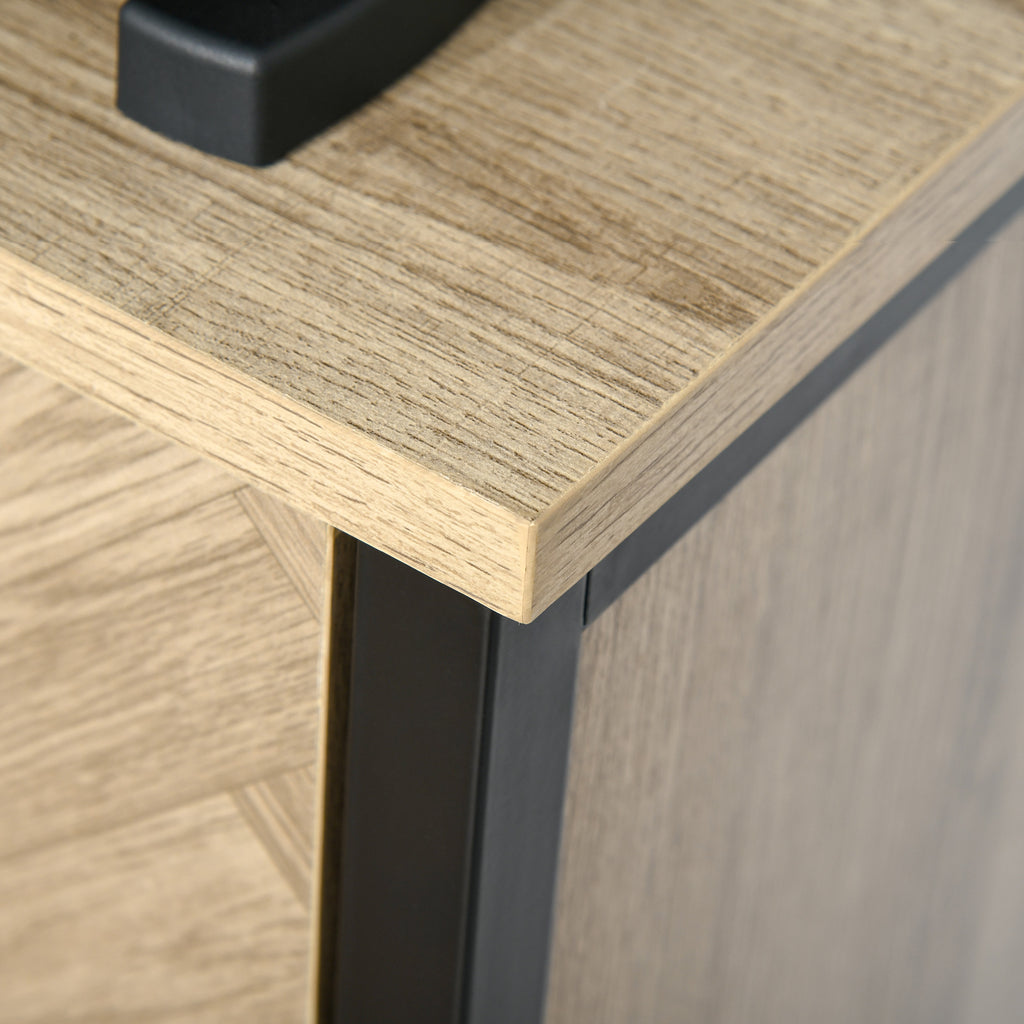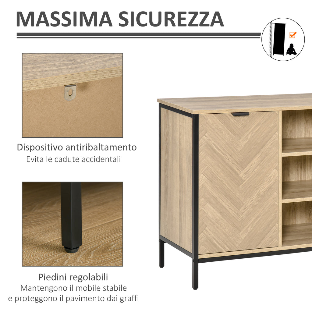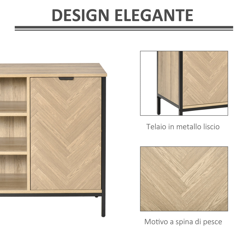 Ami lo stile industriale? Dare un tocco vintage alla tua cucina o alla tua sala da pranzo è facilissimo con questa credenza moderna. Robusta ed elegante, è realizzata con pannelli truciolari color rovere e metallo nero. Ha 3 ripiani centrali e 2 armadietti in cui puoi sistemare piatti, cibi, accessori e utensili da cucina.