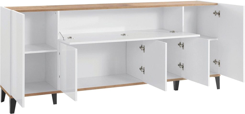 Credenza 4 Ante + 1 Anta Ribalta 200x40x82 cm Sunrise Bianco Lucido e Acero Pereira