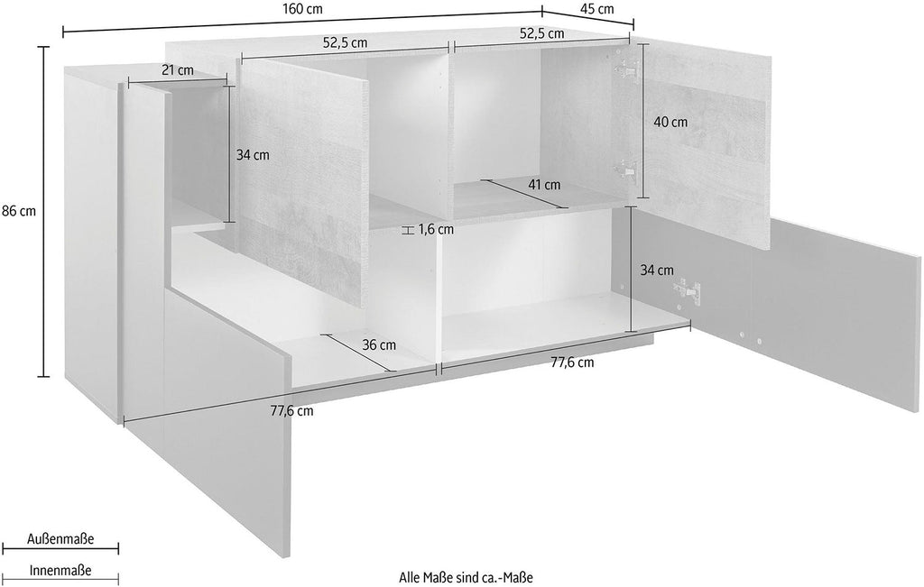 Giordano Shop Mobili Soggiorno Credenza 4 Ante 160x45x86 cm Coro Bia...