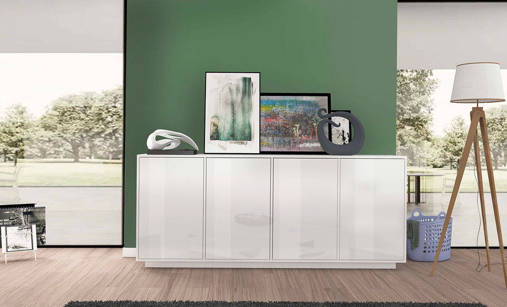 Credenza 4 Ante 180,1x41,4x86 cm Bloom Bianco Lucido