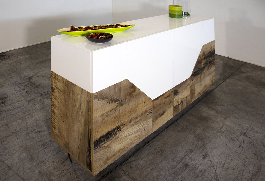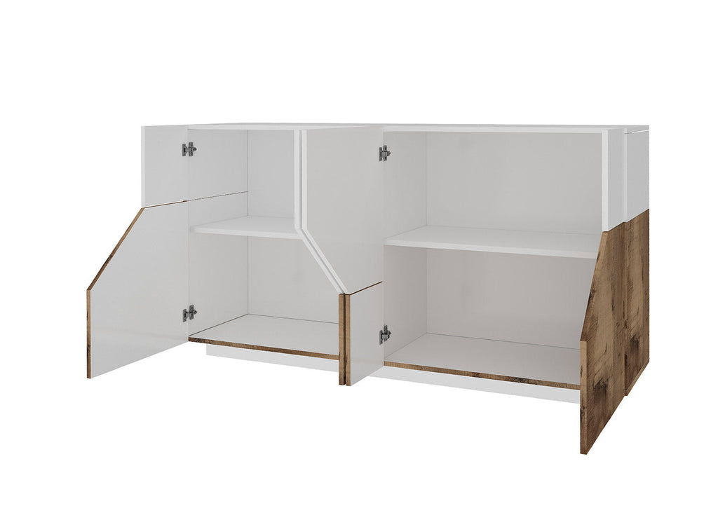 La credenza Alien è caratterizzata da ampie dimensioni e da un design in grado di risaltare in qual sia si ambiente venga inserito. La credenza ALIEN da 200 cm è composta da 4 grandi ante apribili e da una parte in diagonale, con 2 grandi ripiani in legno all'interno. La struttura è realizzata in melamina laccata bianca lucida o report e legno di acero pereira. Il semplice kit di montaggio con cui viene spedita, ti permetterà di caratterizzare il tuo ambiente con un mobile in grado di adattar si a qual sia si stile d’arredo ti piaccia di più.