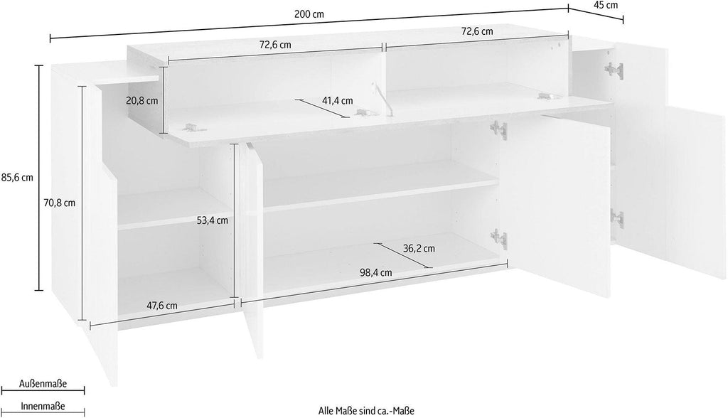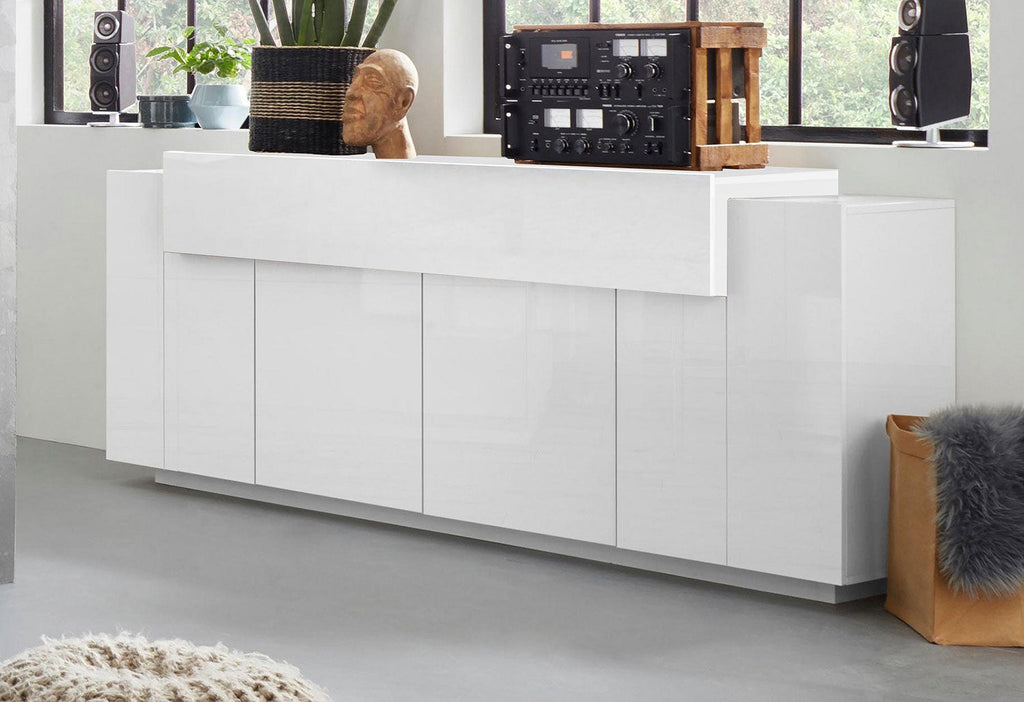 Credenza 5 Ante 200x45x86 cm Coro 4A Bianco Lucido/Bianco