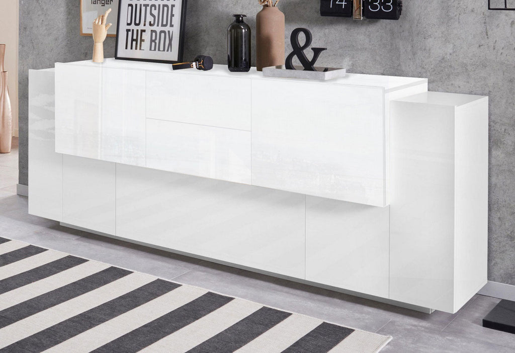 Credenza 5 Ante e 2 Cassetti 220x45x86 cm Coro Bianco Lucido/Bianco