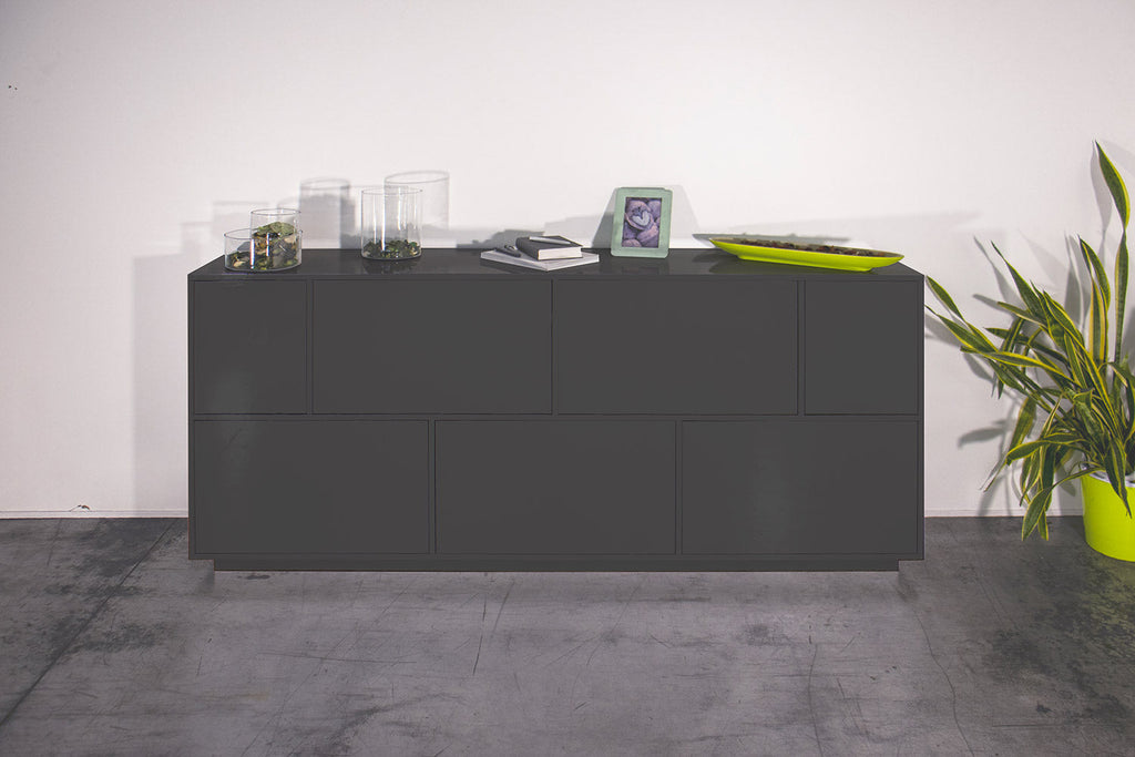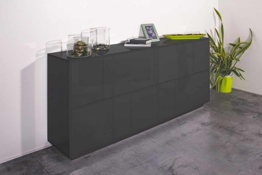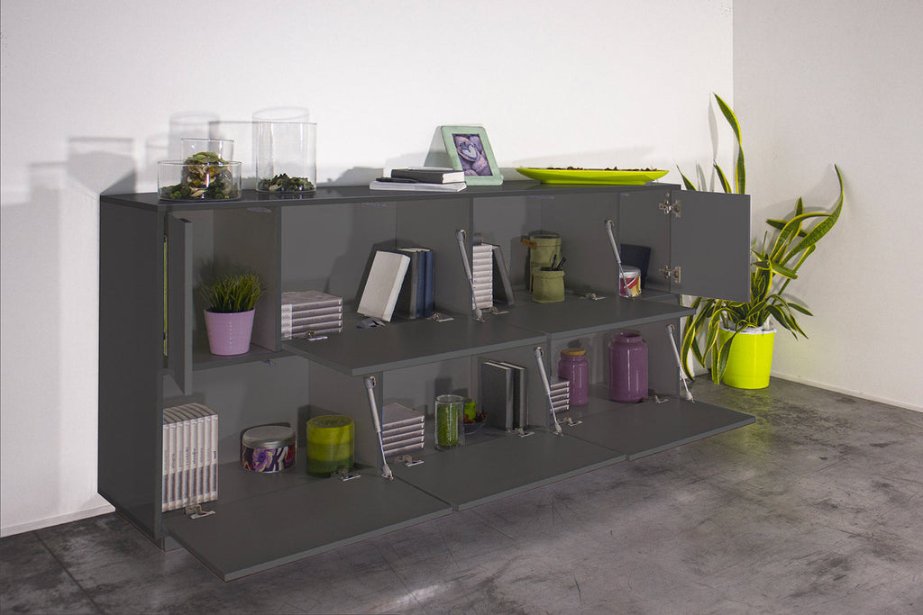 Credenza 7 Ante 200x41,4x86 cm Bloom Grigio Antracite Laccato Lucido