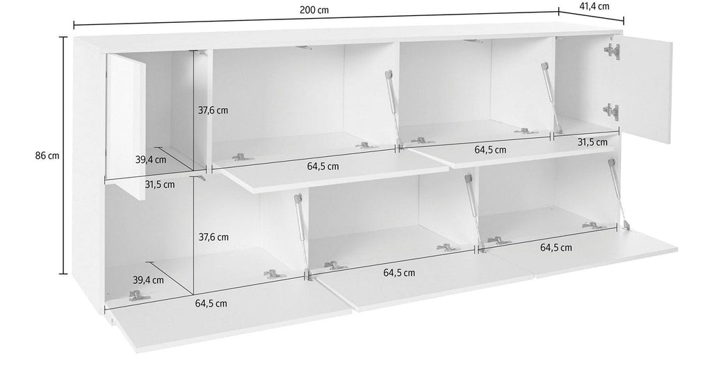 - Dimensioni del mobile montato: 200x41,4x86 cm (LxPxA)