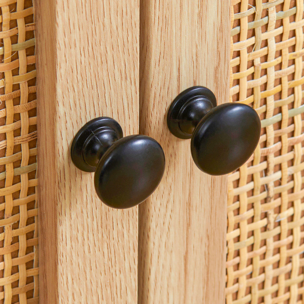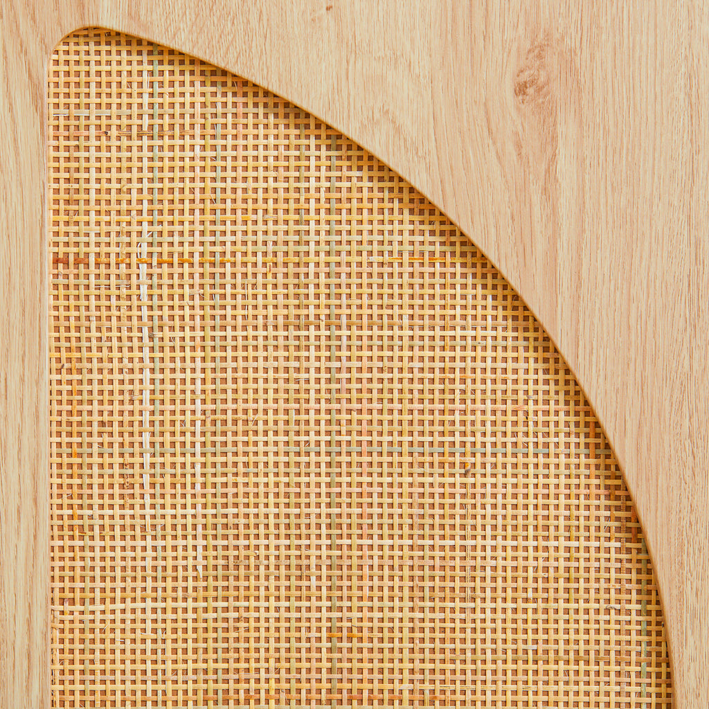 Mantieni i tuoi spazi ordinati con la nostra piccola credenza . L'unione tra legno e rattan in stile Boho la rende elegante e facile da abbinare a diversi stili di arredo. Le gambe in metallo assicurano alla struttura massima stabilità e resistenza al peso, mentre i pannelli in legno con rivestimento in melamina sono resistenti agli schizzi d'acqua e facili da pulire.