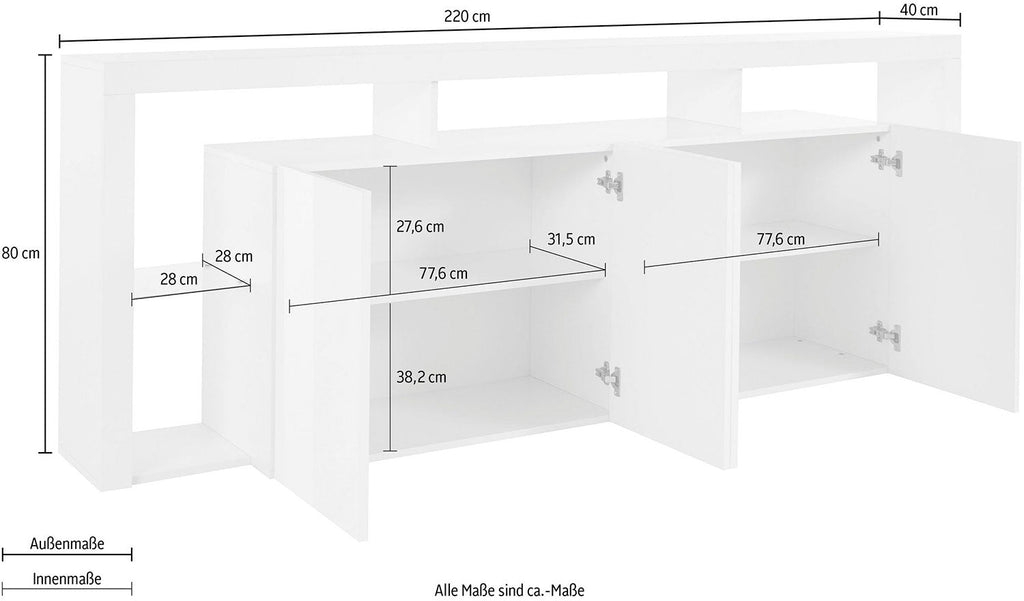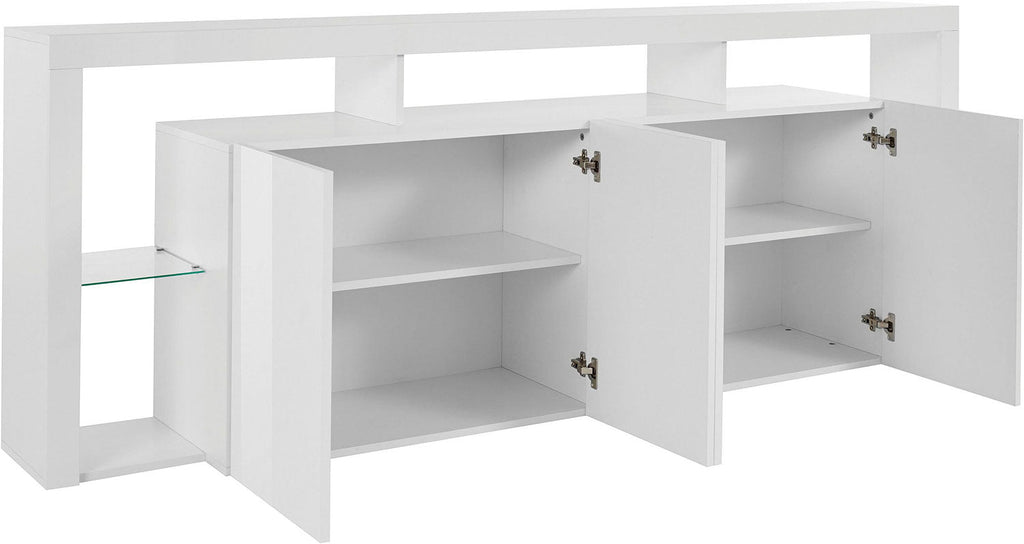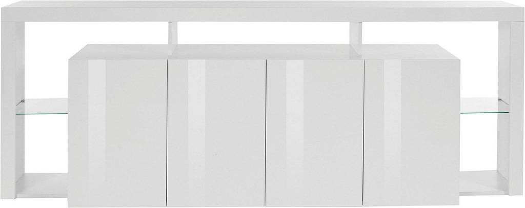 Credenza con 4 Ante e Ripiani in Vetro a Giorno 220x40x80 cm Essential 3A Bianco Lucido