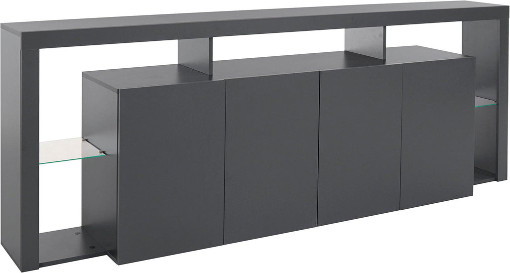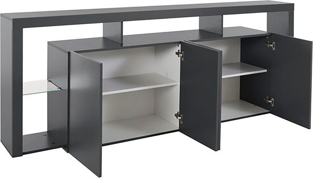 Credenza con 4 Ante e Ripiani in Vetro a Giorno 220x40x80 cm Essential 3A Grigio Antracite Opaco