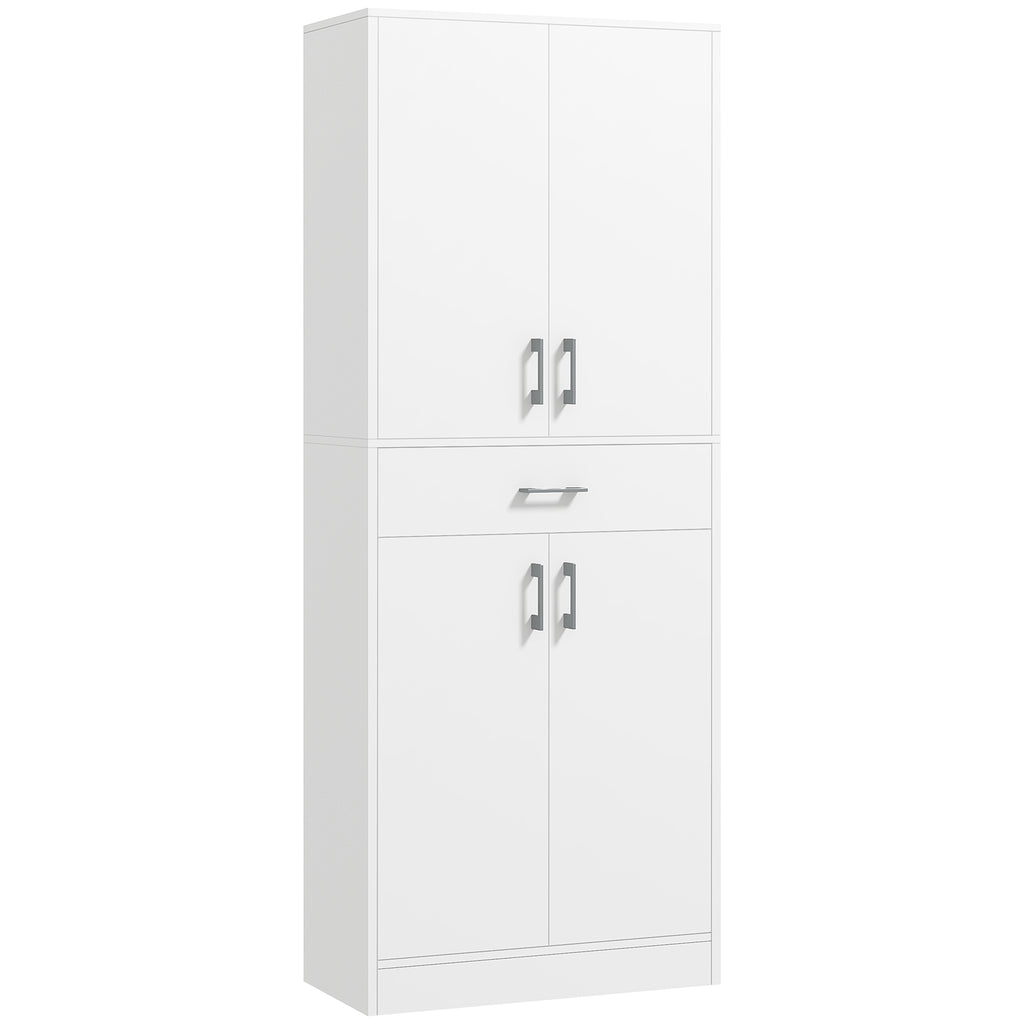 Credenza Cucina Alta con 2 Armadietti e un Cassetto Centrale 70,8x34x180 cm in MDF Bianco
