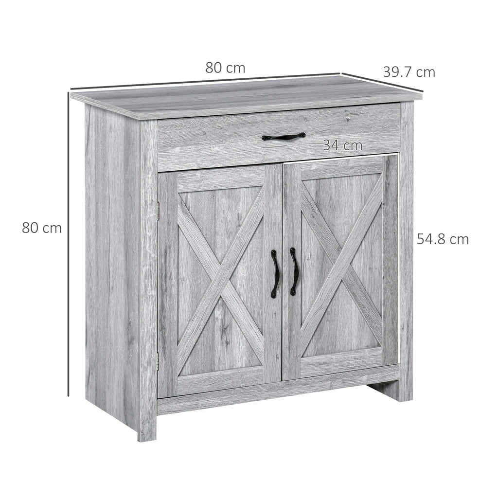 Credenza Cucina Country con Armadietto a 2 Ante e Cassetto 80x39.7x80cm Grigio