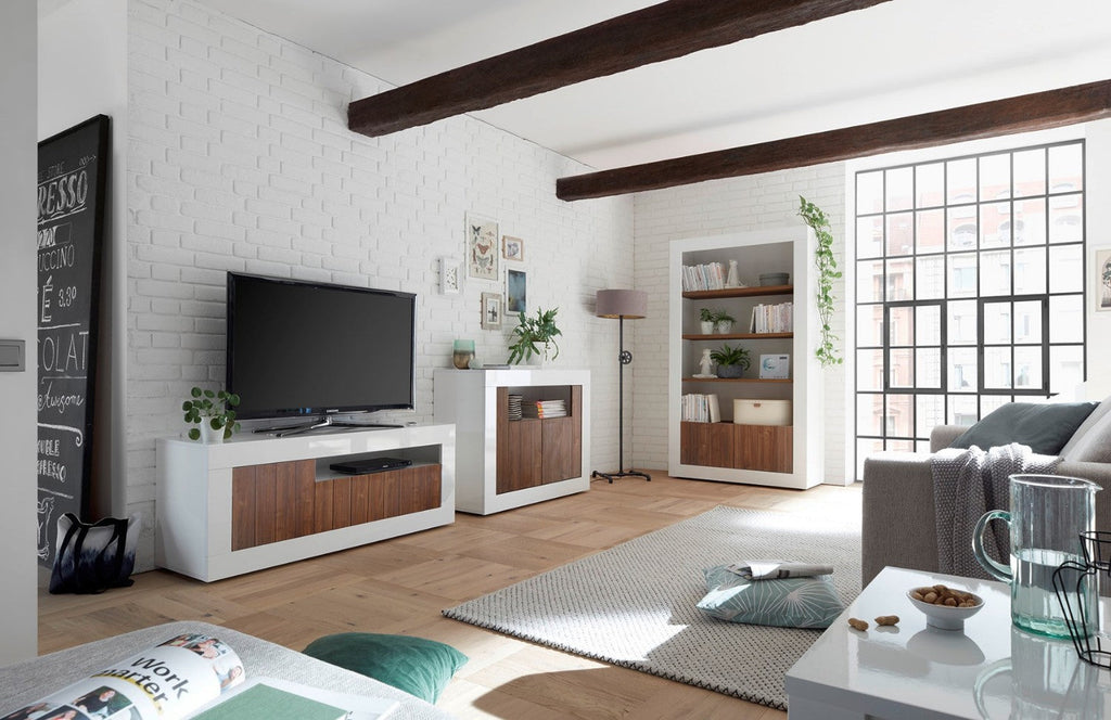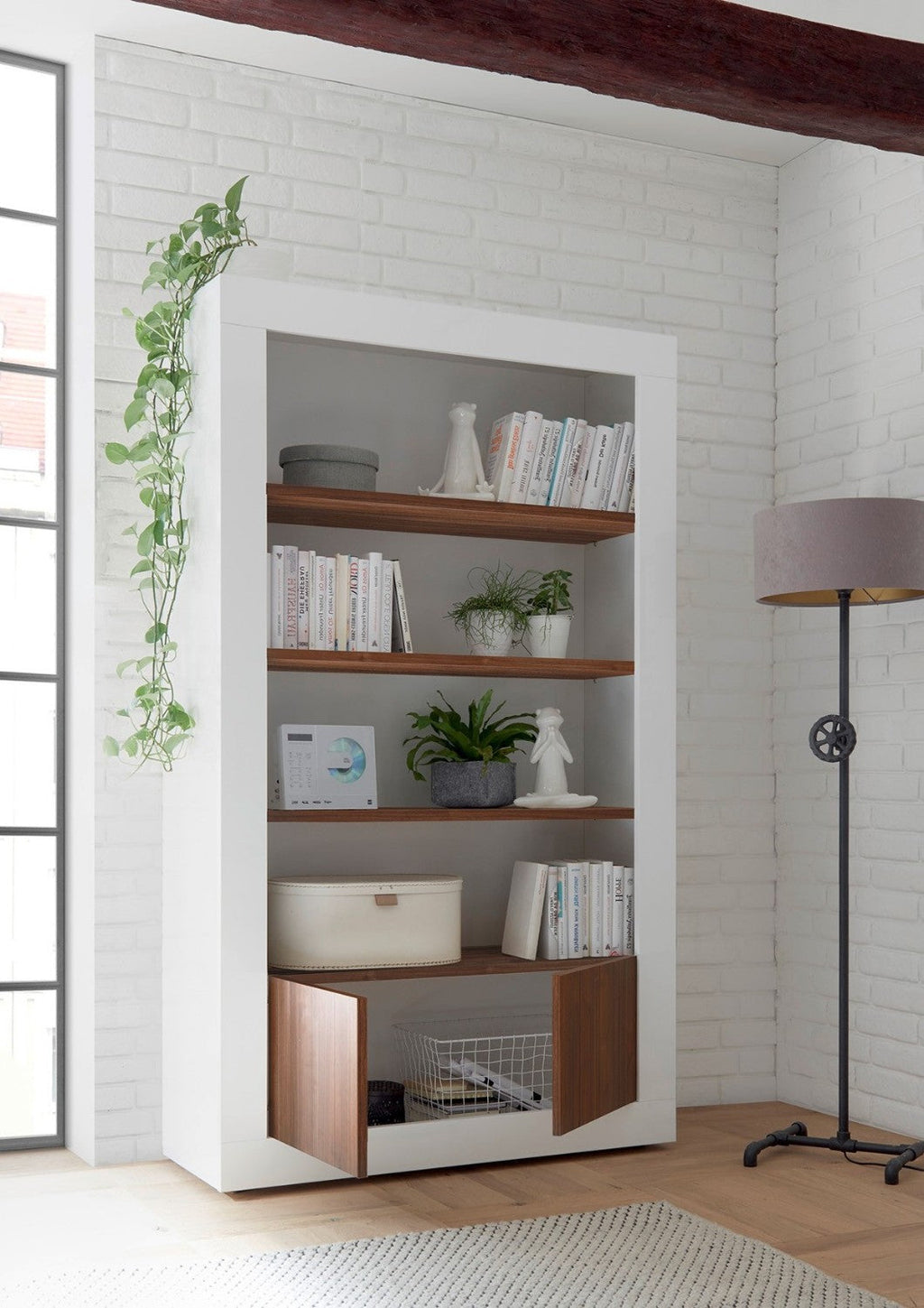Mobile Credenza Libreria 2 Ante 4 Ripiani 110x42x191 cm in Legno TFT Lipari Bianco e Noce