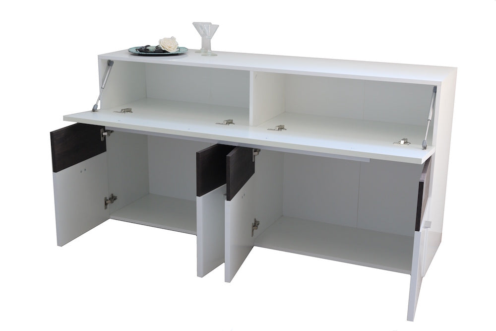 Mobile Madia Credenza 1 Porta Flap e 4 Porte 160x43x85cm TFT Primo Bianco Lucido