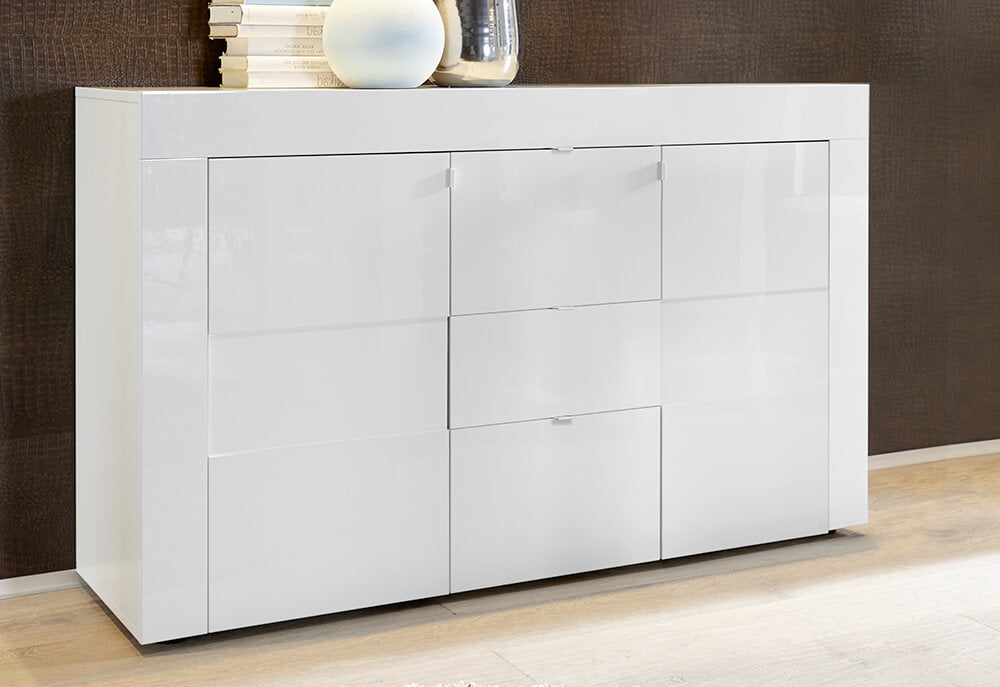 Credenza Mobile da Salotto 2 Porte 3 Cassetti 138x42x84cm TFT Build Bianco Lucido