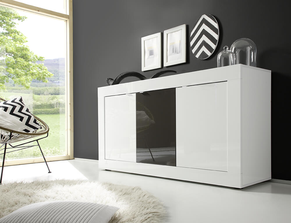 Credenza Mobile da Salotto 3 Porte 160x43x86cm TFT Basic Bianco Lucido Antracite Lucido